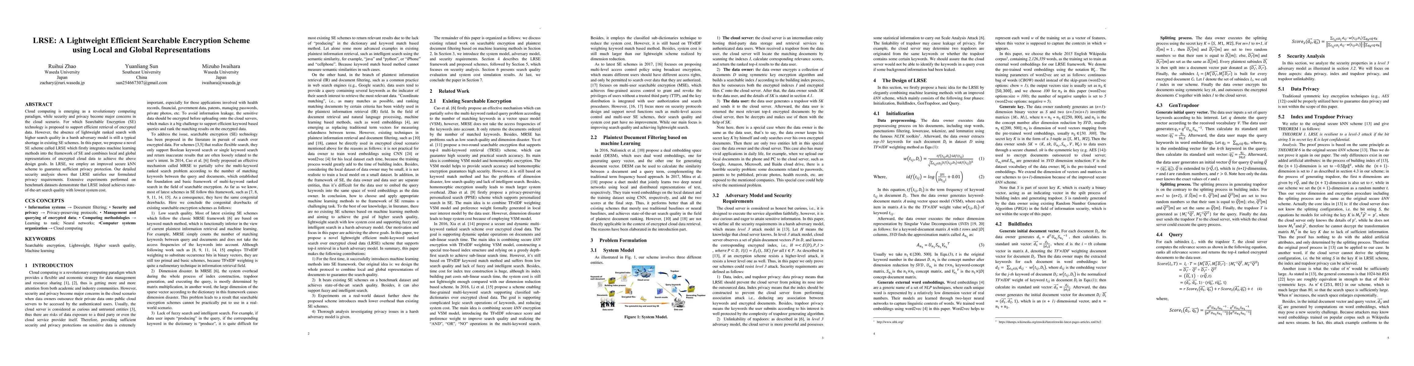 Cloud computing is emerging as a revolutionary computing paradigm, while security and privacy become major concerns in the cloud scenario. For which Searchable Encryption (SE) technology is proposed to support efficient retrieval of encrypted data. However, the absence of lightweight ranked search with higher search quality in a harsh adversary model is still a typical shortage in existing SE schemes. In this paper, we propose a novel SE scheme called LRSE which firstly integrates machine learning methods into the framework of SE and combines local and global representations of encrypted cloud data to achieve the above design goals. In LRSE, we employ an improved secure kNN scheme to guarantee sufficient privacy protection. Our detailed security analysis shows that LRSE satisfies our formulated privacy requirements. Extensive experiments performed on benchmark datasets demonstrate that LRSE indeed achieves state-of-the-art search quality with lowest system cost.