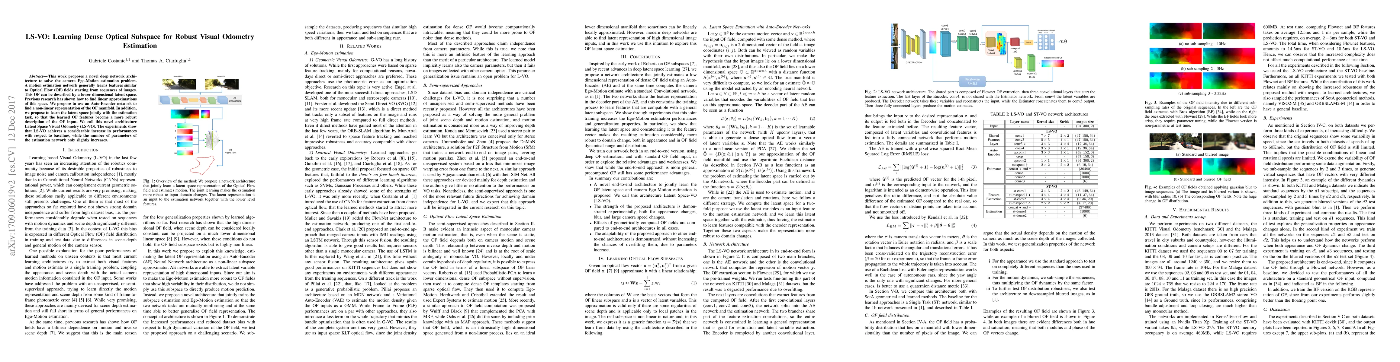 This work proposes a novel deep network architecture to solve the camera Ego-Motion estimation problem. A motion estimation network generally learns features similar to Optical Flow (OF) fields starting from sequences of images. This OF can be described by a lower dimensional latent space. Previous research has shown how to find linear approximations of this space. We propose to use an Auto-Encoder network to find a non-linear representation of the OF manifold. In addition, we propose to learn the latent space jointly with the estimation task, so that the learned OF features become a more robust description of the OF input. We call this novel architecture LS-VO. The experiments show that LS-VO achieves a considerable increase in performances in respect to baselines, while the number of parameters of the estimation network only slightly increases.