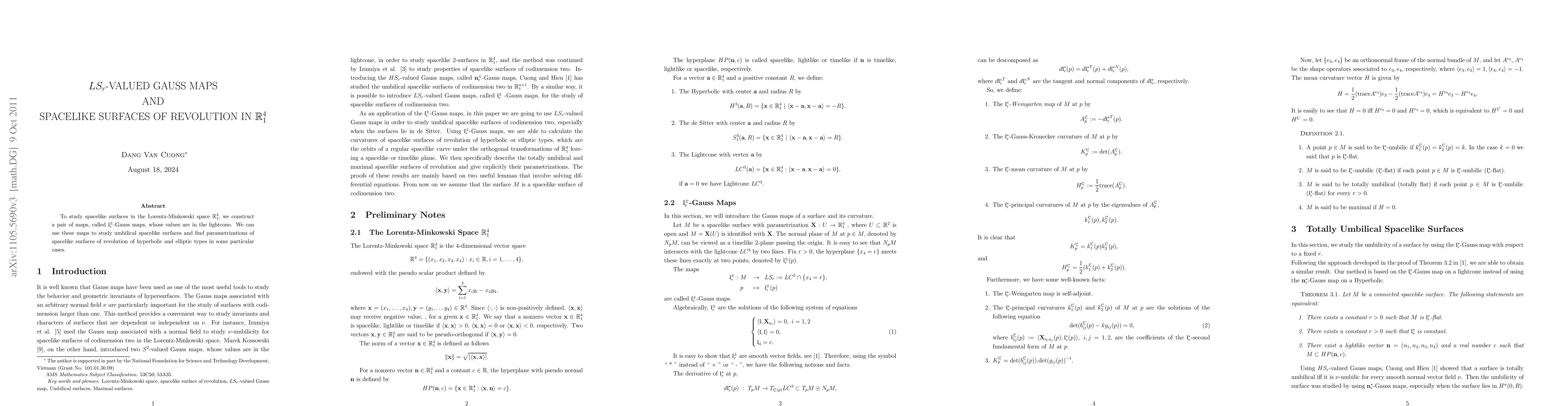This paper constructs $\mathfrak{l}_r^{\pm}$-Gauss maps for spacelike surfaces in $\mathbb{R}_1^4$ to study umbilical surfaces and parametrizes spacelike surfaces of revolution, specifically hyperbolic and elliptic types.