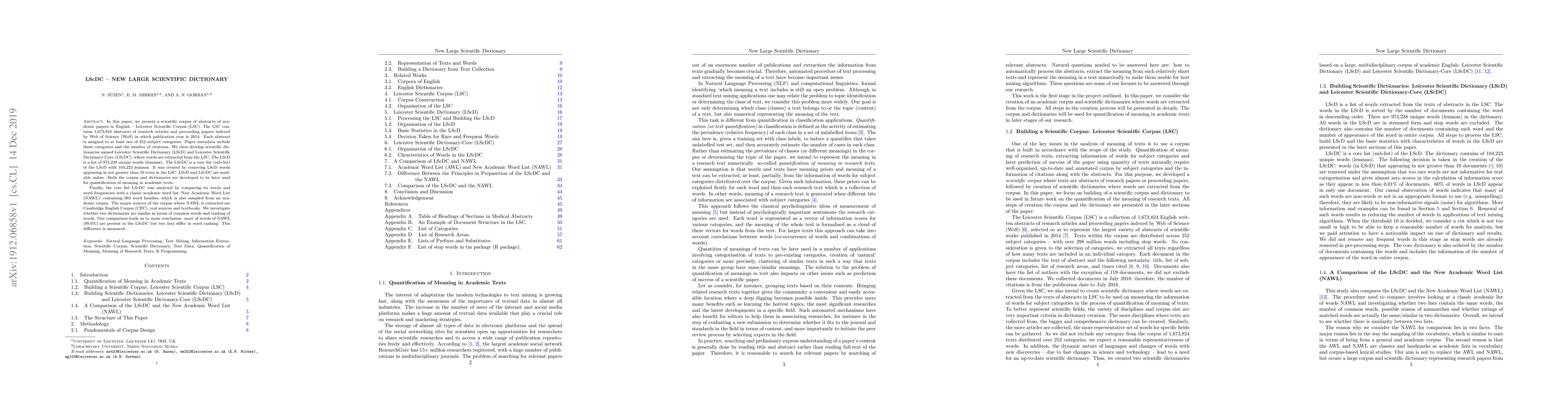 A scientific dictionary, LScDC, was created from a large corpus of academic abstracts, showing 99.6% overlap with the New Academic Word List, but differing in word ranking.