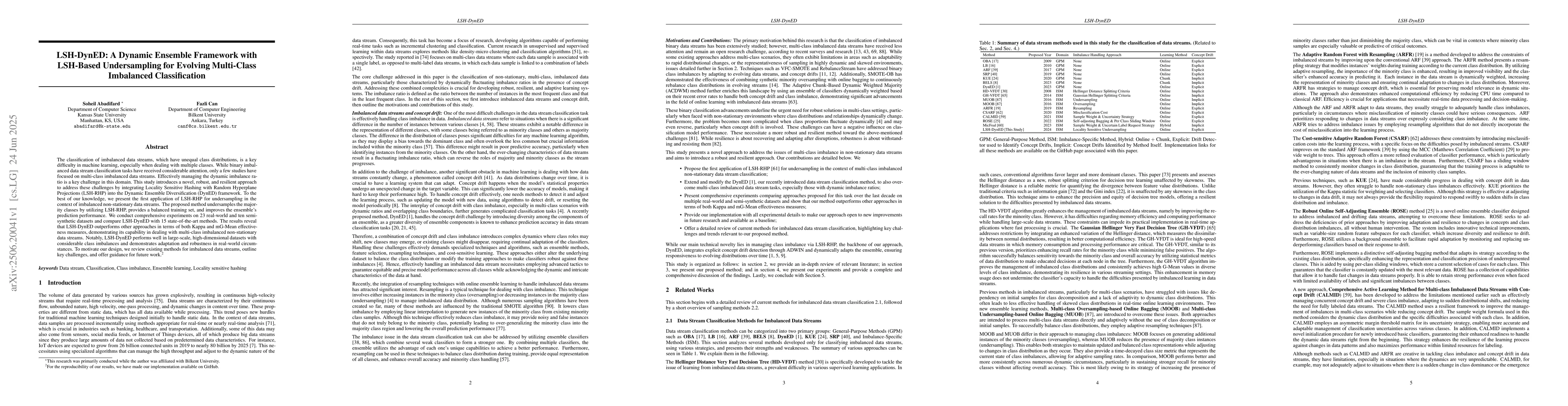The classification of imbalanced data streams, which have unequal class distributions, is a key difficulty in machine learning, especially when dealing with multiple classes. While binary imbalanced data stream classification tasks have received considerable attention, only a few studies have focused on multi-class imbalanced data streams. Effectively managing the dynamic imbalance ratio is a key challenge in this domain. This study introduces a novel, robust, and resilient approach to address these challenges by integrating Locality Sensitive Hashing with Random Hyperplane Projections (LSH-RHP) into the Dynamic Ensemble Diversification (DynED) framework. To the best of our knowledge, we present the first application of LSH-RHP for undersampling in the context of imbalanced non-stationary data streams. The proposed method undersamples the majority classes by utilizing LSH-RHP, provides a balanced training set, and improves the ensemble's prediction performance. We conduct comprehensive experiments on 23 real-world and ten semi-synthetic datasets and compare LSH-DynED with 15 state-of-the-art methods. The results reveal that LSH-DynED outperforms other approaches in terms of both Kappa and mG-Mean effectiveness measures, demonstrating its capability in dealing with multi-class imbalanced non-stationary data streams. Notably, LSH-DynED performs well in large-scale, high-dimensional datasets with considerable class imbalances and demonstrates adaptation and robustness in real-world circumstances. To motivate our design, we review existing methods for imbalanced data streams, outline key challenges, and offer guidance for future work. For the reproducibility of our results, we have made our implementation available on GitHub.
