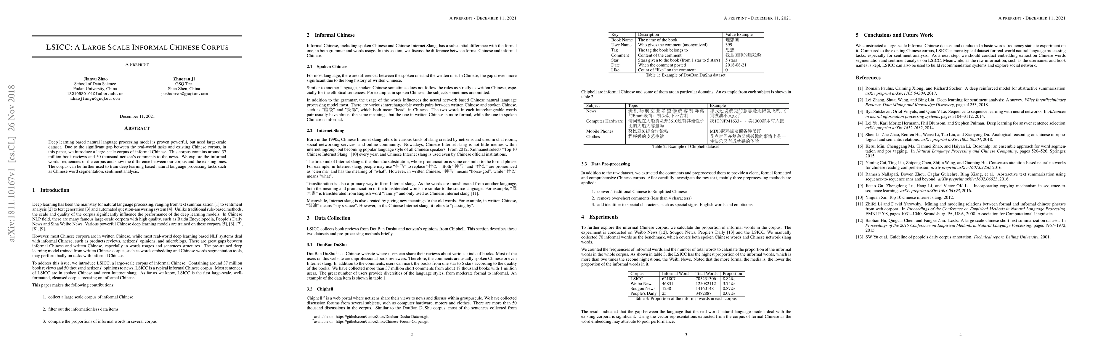 This paper introduces LSICC, a large-scale informal Chinese corpus comprising 37 million book reviews and 50 thousand news comments, aiming to bridge the gap between real-world language use and existing datasets. The corpus can enhance deep learning models for tasks like Chinese word segmentation and sentiment analysis.