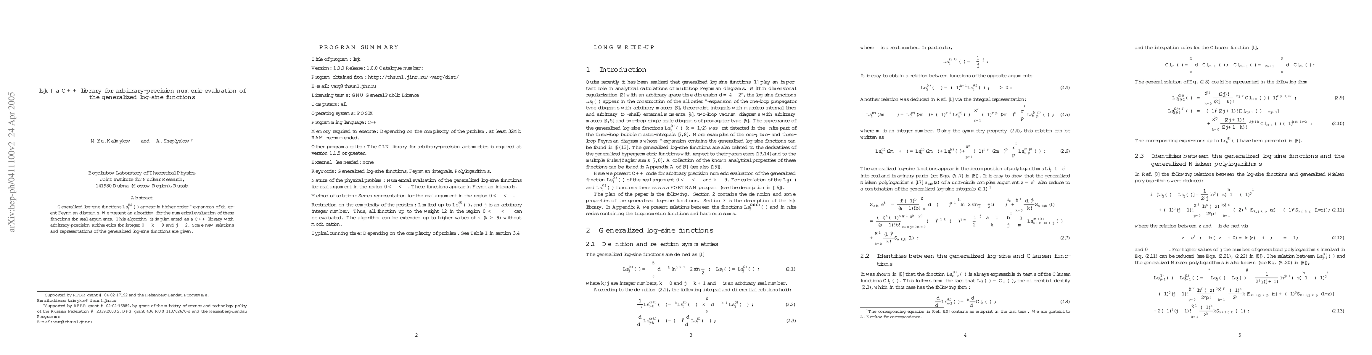 Generalized log-sine functions appear in higher order epsilon-expansion of different Feynman diagrams. We present an algorithm for numerical evaluation of these functions of real argument. This algorithm is implemented as C++ library with arbitrary-precision arithmetics for integer 0 < k < 9 and j > 1. Some new relations and representations for the generalized log-sine functions are given.
