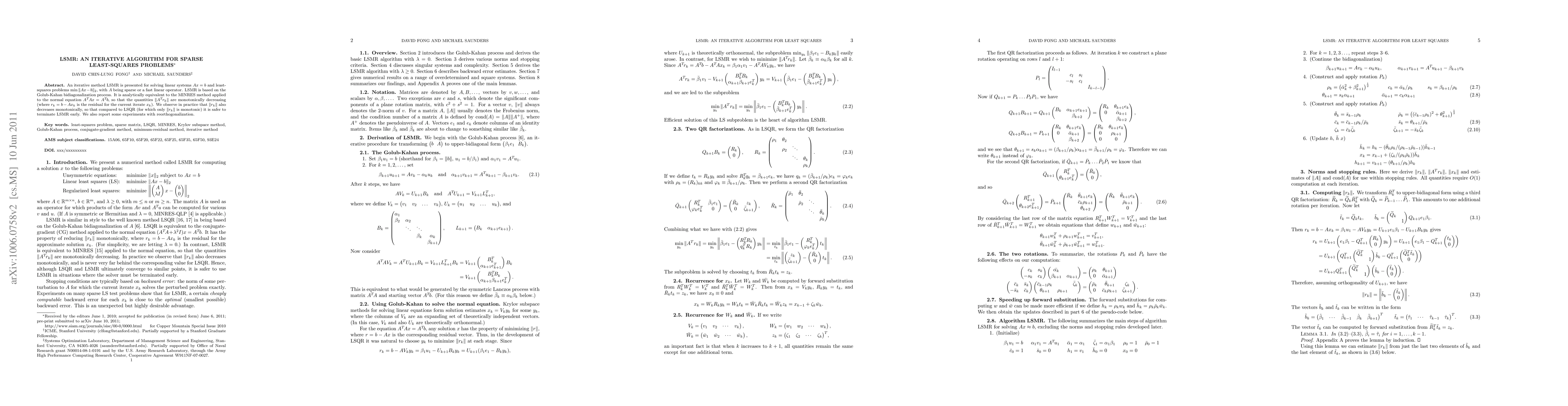LSMR is an iterative algorithm for solving sparse least-squares problems, offering a safer termination condition than LSQR due to the monotonic decrease in residual norm.