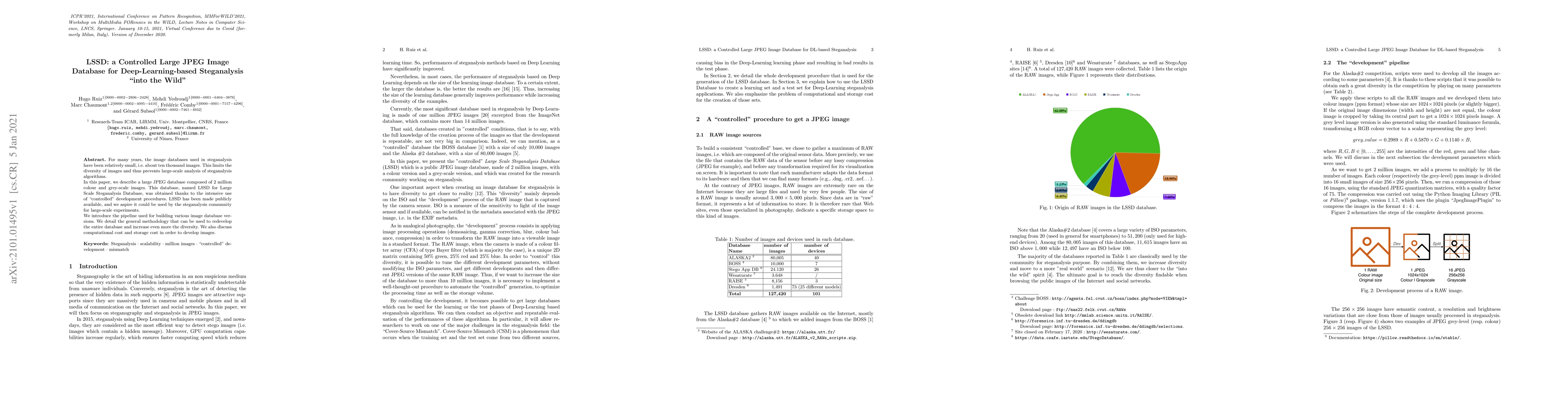 The Large Scale Steganalysis Database (LSSD) is now publicly available, offering the steganalysis community a valuable tool for large-scale experiments and analysis.