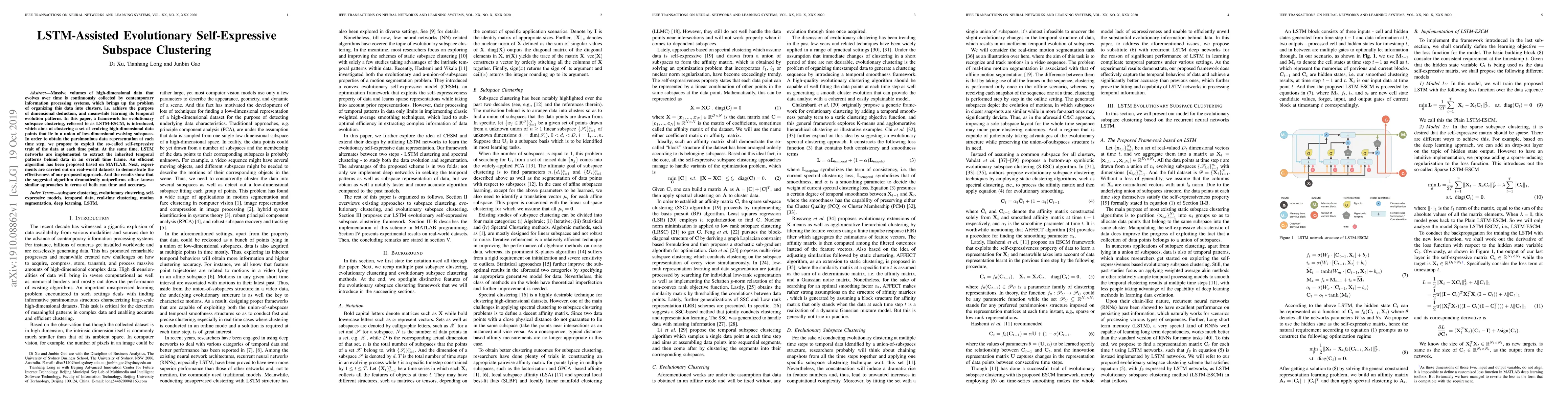 This research paper proposes a framework for clustering high-dimensional evolving data using Long Short-Term Memory (LSTM) networks to identify temporal patterns and reduce dimensionality through self-expressive subspace clustering, achieving better performance than existing approaches.