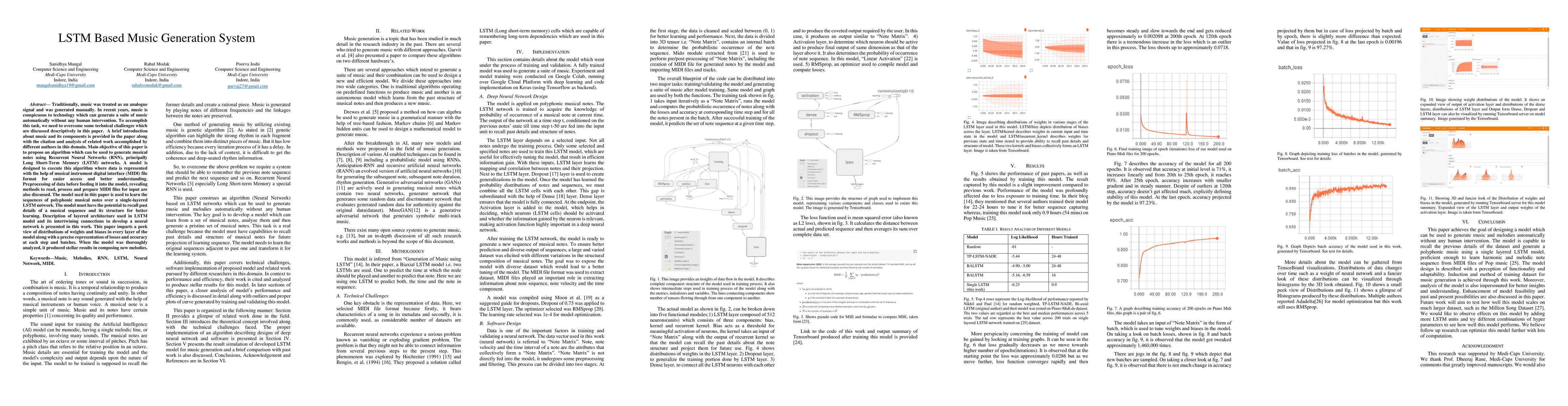 This paper proposes an LSTM-based algorithm for automatic music generation using Recurrent Neural Networks. It describes the model's architecture, data preprocessing with MIDI files, and demonstrates the model's effectiveness in composing new melodies, showing promising results in musical sequence learning and recall.