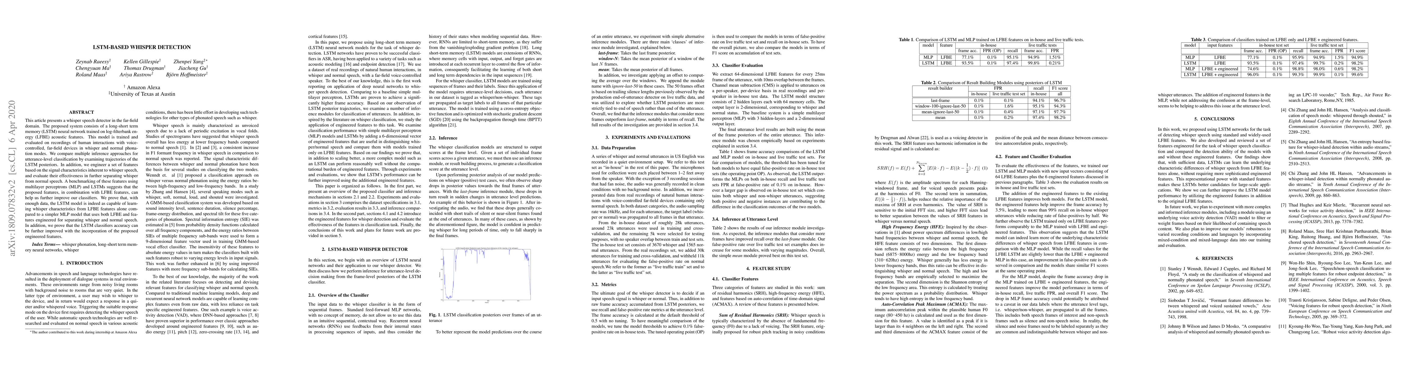 Researchers develop an LSTM-based system for detecting whispers in far-field devices, achieving improved accuracy with engineered features that separate whisper characteristics from normal speech.