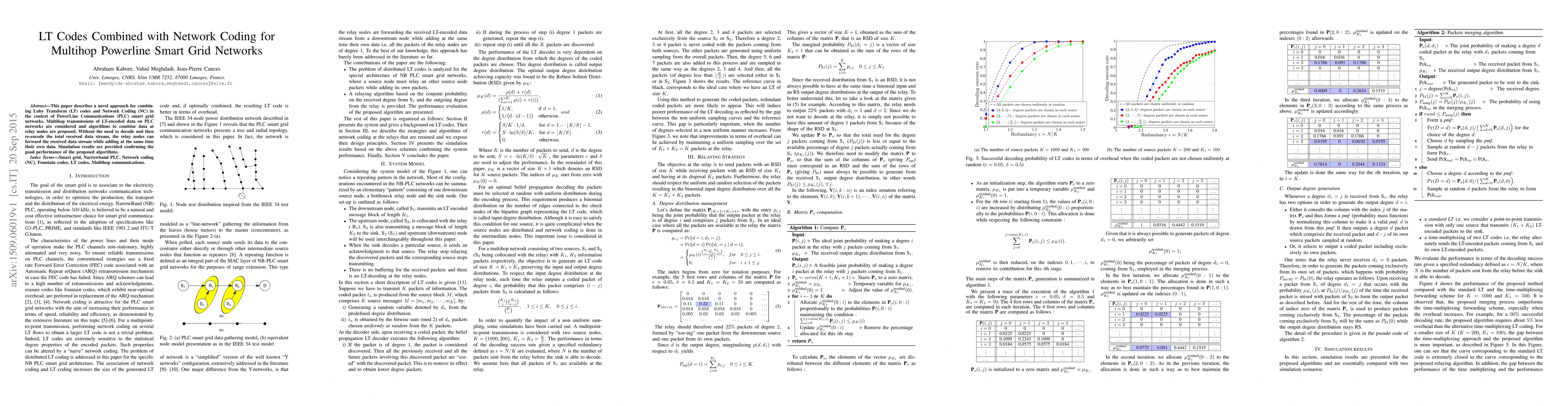 This paper describes a novel approach for combining Luby Transform (LT) codes and Network Coding (NC) in the context of PowerLine Communications (PLC) smart grid networks. Multihop transmissions of LT-encoded data on PLC networks are considered and algorithms to combine data at relay nodes are proposed. Without the need to decode and then re-encode the total received data stream, the relay nodes can forward the received data stream while adding at the same time their own data. Simulation results are provided confirming the good performance of the proposed algorithms.