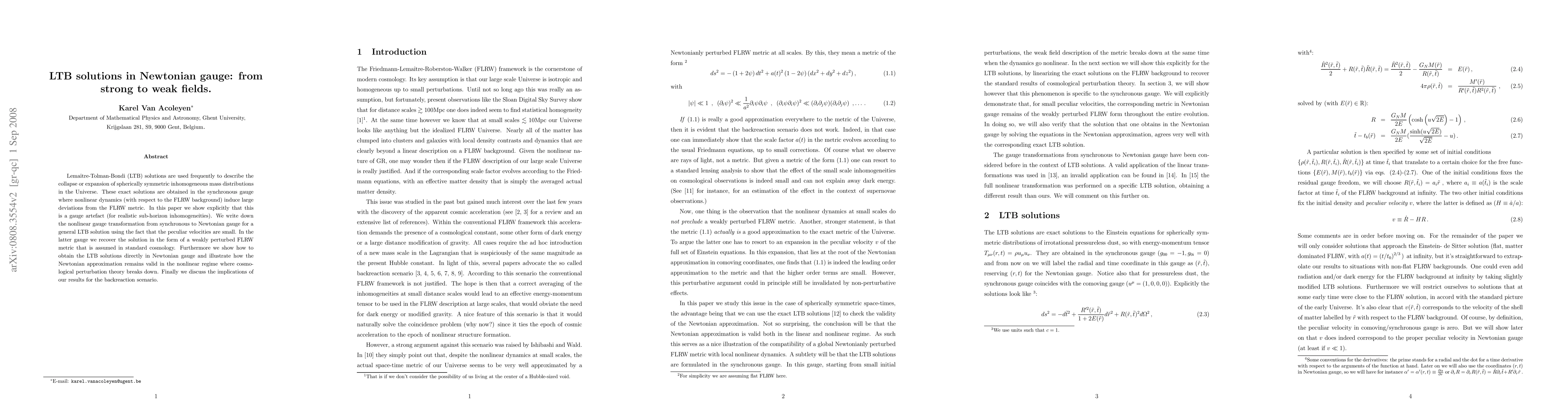 This paper investigates Lemaitre-Tolman-Bondi (LTB) solutions in the Newtonian gauge, demonstrating that large deviations from the FLRW metric in the synchronous gauge are gauge artifacts. It provides a nonlinear gauge transformation to express LTB solutions as weakly perturbed FLRW metrics in the Newtonian gauge, showing the validity of the Newtonian approximation even in the nonlinear regime.