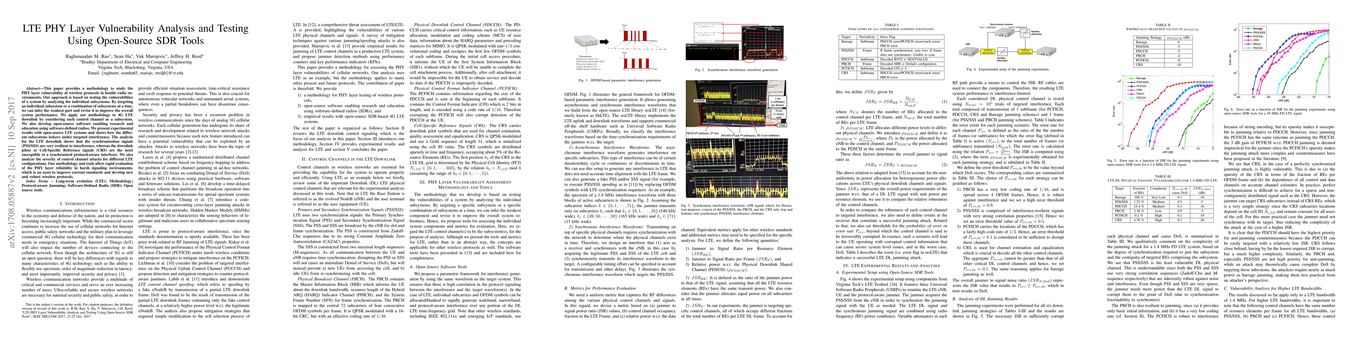 This paper presents a methodology to analyze the physical layer vulnerabilities of LTE in hostile radio environments using open-source SDR tools, revealing that synchronization signals are resilient while downlink pilots are highly susceptible to interference, thus aiding in the development of more robust wireless protocols.