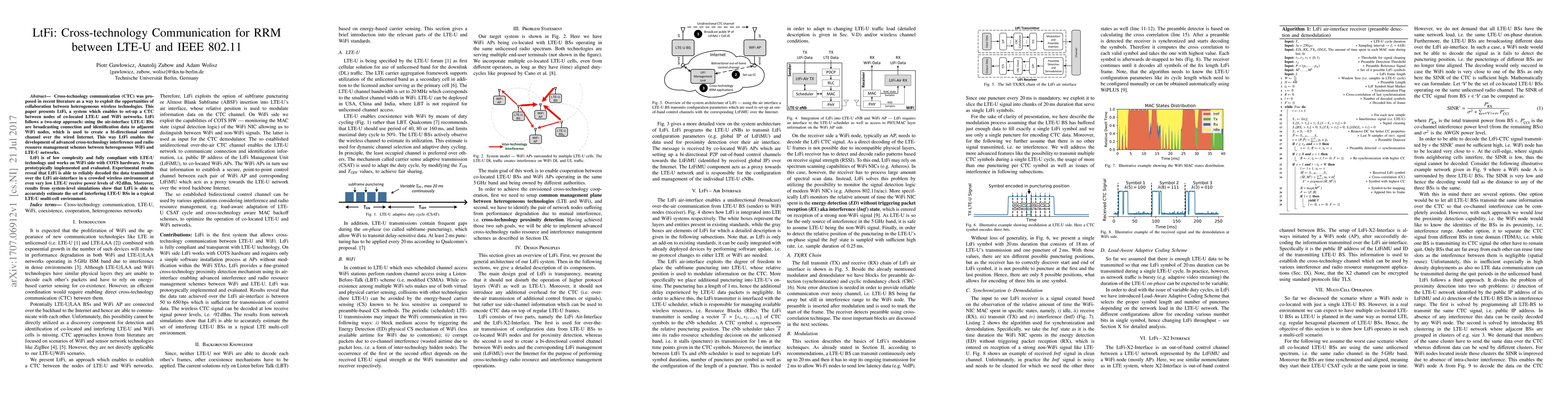 LtFi facilitates cross-technology communication between LTE-U and WiFi networks, enabling advanced interference and resource management. It uses LTE-U broadcasts to establish a bi-directional control channel over the Internet, demonstrating reliable data decoding and accurate interference estimation in simulations.