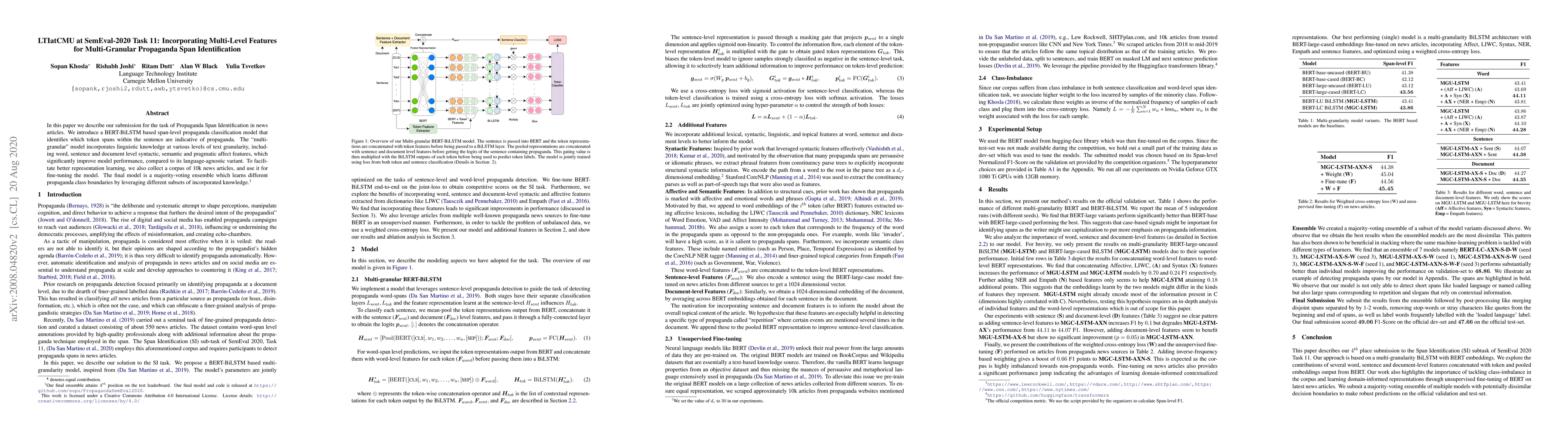 Researchers developed a model to identify propaganda spans in news articles by incorporating linguistic knowledge at multiple levels of text granularity, achieving 4th place on the leaderboard. The multi-granular approach significantly improved performance over a language-agnostic variant.
