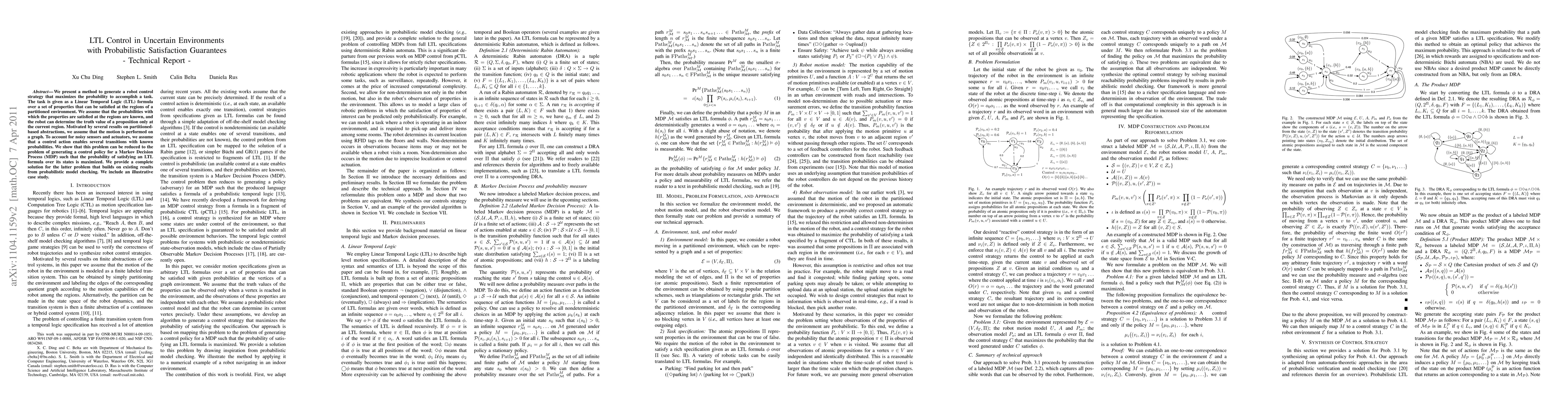 The approach reduces the problem to finding a Markov Decision Process policy that satisfies the LTL formula with maximum probability, leveraging existing results from probabilistic model checking.