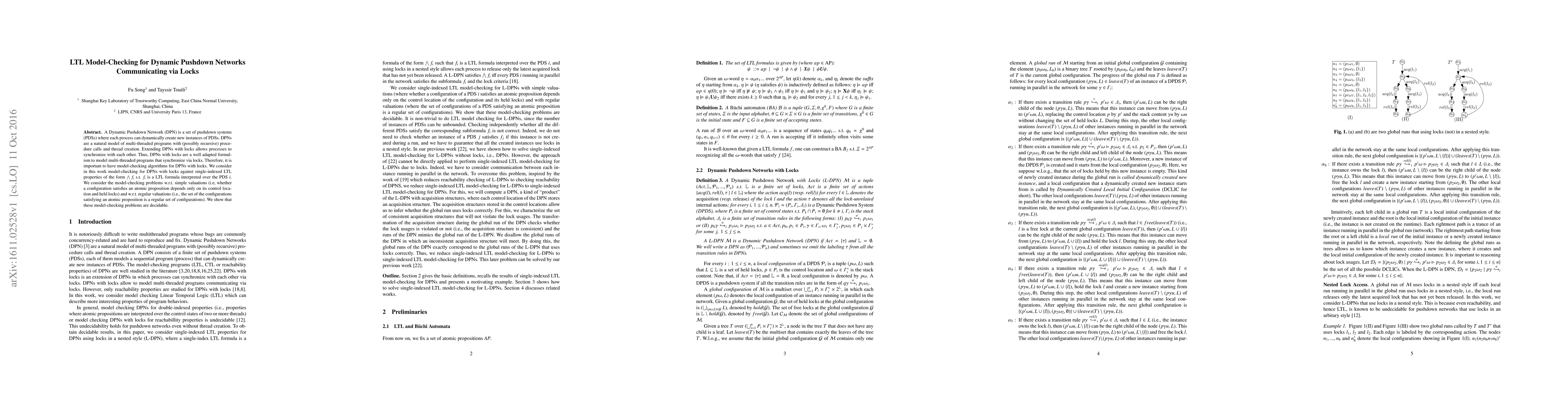 This paper explores model-checking for Dynamic Pushdown Networks (DPNs) with locks against Linear Temporal Logic (LTL) properties, demonstrating decidability for both simple and regular valuations. The study focuses on DPNs as a model for multi-threaded programs with synchronization via locks.