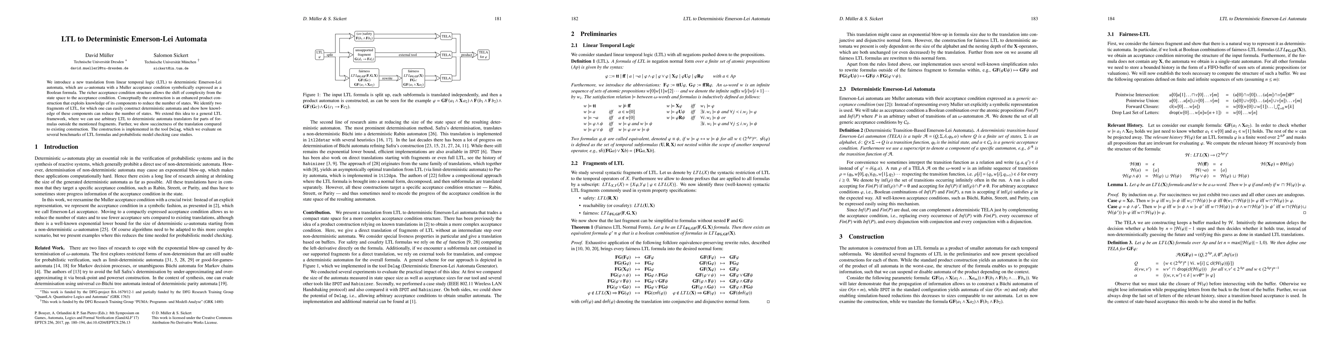 This paper presents a new translation method from linear temporal logic (LTL) to deterministic Emerson-Lei automata, reducing state complexity through enhanced product construction. The method is shown to be more succinct than existing translations and is implemented in the Delag tool, which is evaluated on LTL benchmarks and probabilistic model checking studies.