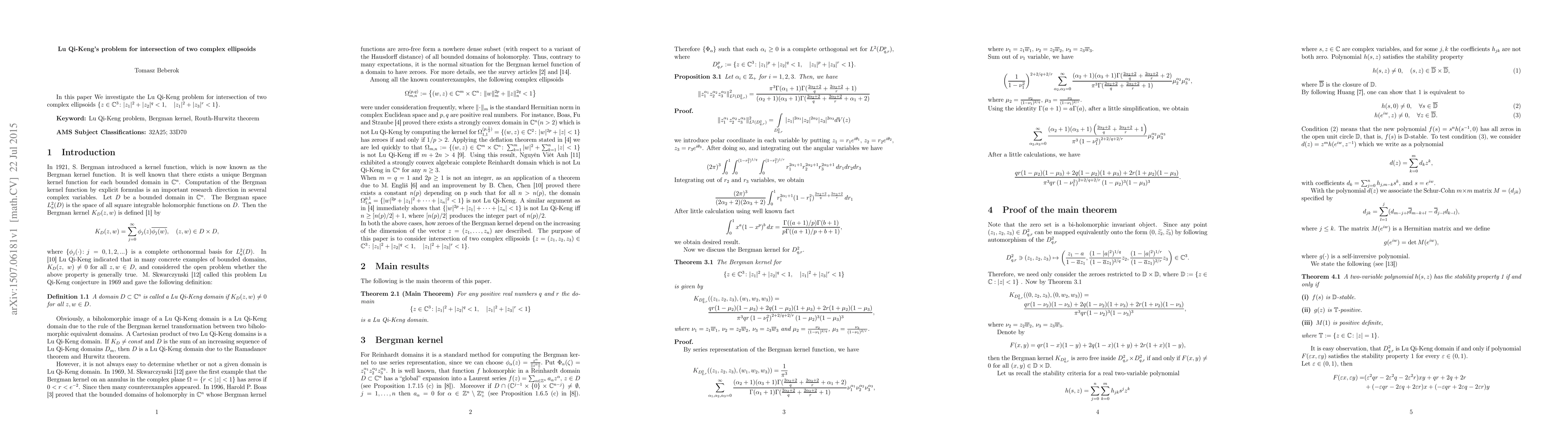 Two-line summary: This paper explores the Lu Qi-Keng problem concerning the intersection of two complex ellipsoids defined by specific quadratic and higher-order constraints in the complex space $\mathbb{C}^3$. The study aims to determine the geometric and algebraic properties of their intersection.
