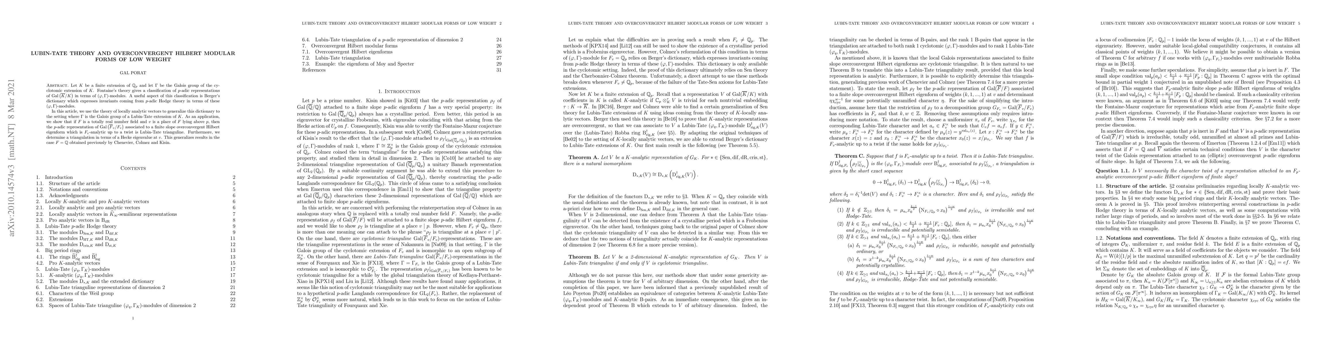 Let $K$ be a finite extension of $\mathbb{Q}_{p}$ and let $\Gamma$ be the Galois group of the cyclotomic extension of $K$. Fontaine's theory gives a classification of $p$-adic representations of $\mathrm{Gal}\left(\overline{K}/K\right)$ in terms of $(\varphi,\Gamma)$-modules. A useful aspect of this classification is Berger's dictionary which expresses invariants coming from $p$-adic Hodge theory in terms of these $\left(\varphi,\Gamma\right)$-modules. In this paper, we use the theory of locally analytic vectors to generalize this dictionary to the setting where $\Gamma$ is the Galois group of a Lubin-Tate extension of $K$. As an application, we show that if $F$ is a totally real number field and $v$ is a place of $F$ lying above $p$, then the $p$-adic representation of $\mathrm{Gal}\left(\overline{F}_{v}/F_{v}\right)$ associated to a finite slope overconvergent Hilbert eigenform which is $F_{v}$-analytic up to a twist is Lubin-Tate trianguline. Furthermore, we determine a triangulation in terms of a Hecke eigenvalue at $v$. This generalizes results in the case $F=\mathbb{Q}$ obtained previously by Chenevier, Colmez and Kisin.