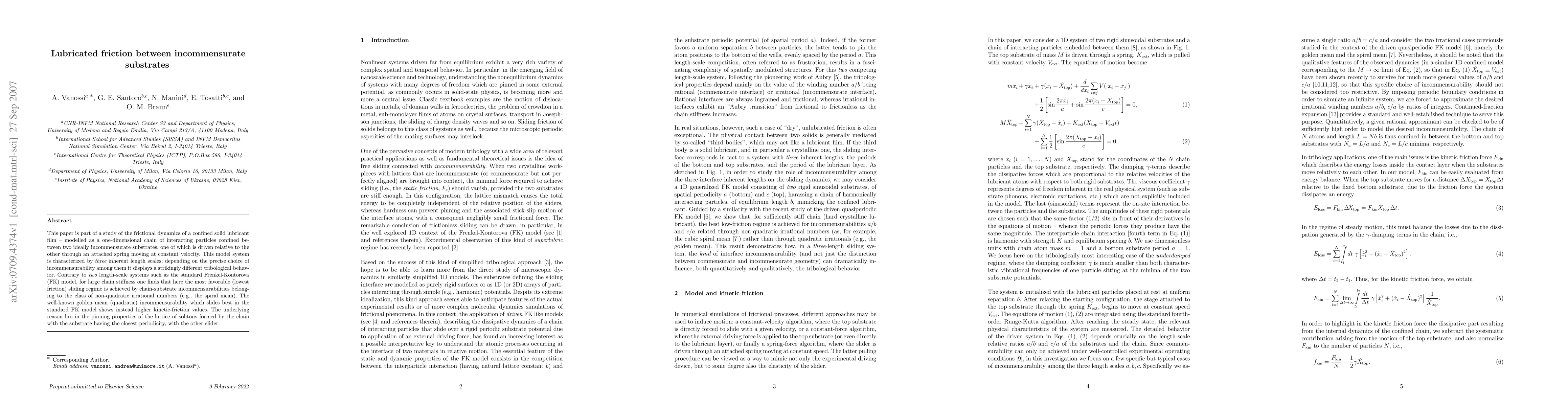 This study explores the frictional dynamics of a confined solid lubricant film between incommensurate substrates, revealing that non-quadratic irrational incommensurate ratios (e.g., spiral mean) yield lower friction compared to the golden mean, due to the unique pinning properties of soliton lattices.