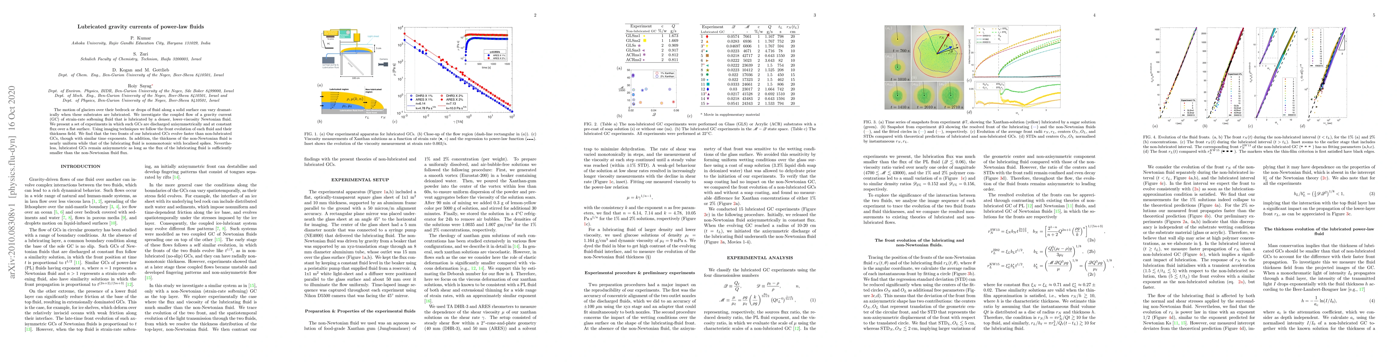 The motion of glaciers over their bedrock or drops of fluid along a solid surface can vary dramatically when these substrates are lubricated. We investigate the coupled flow of a gravity current (GC) of strain-rate softening fluid that is lubricated by a denser, lower-viscosity Newtonian fluid. We present a set of experiments in which such GCs are discharged axisymmetrically and at constant flux over a flat surface. Using imaging techniques we follow the front evolution of each fluid and their thickness field. We find that the two fronts of our lubricated GCs evolve faster than non-lubricated GCs, though with similar time exponents. In addition, the thickness of the non-Newtonian fluid is nearly uniform while that of the lubricating fluid is nonmonotonic with localised spikes. Nevertheless, lubricated GCs remain axisymmetric as long as the flux of the lubricating fluid is sufficiently smaller than the non-Newtonian fluid flux.