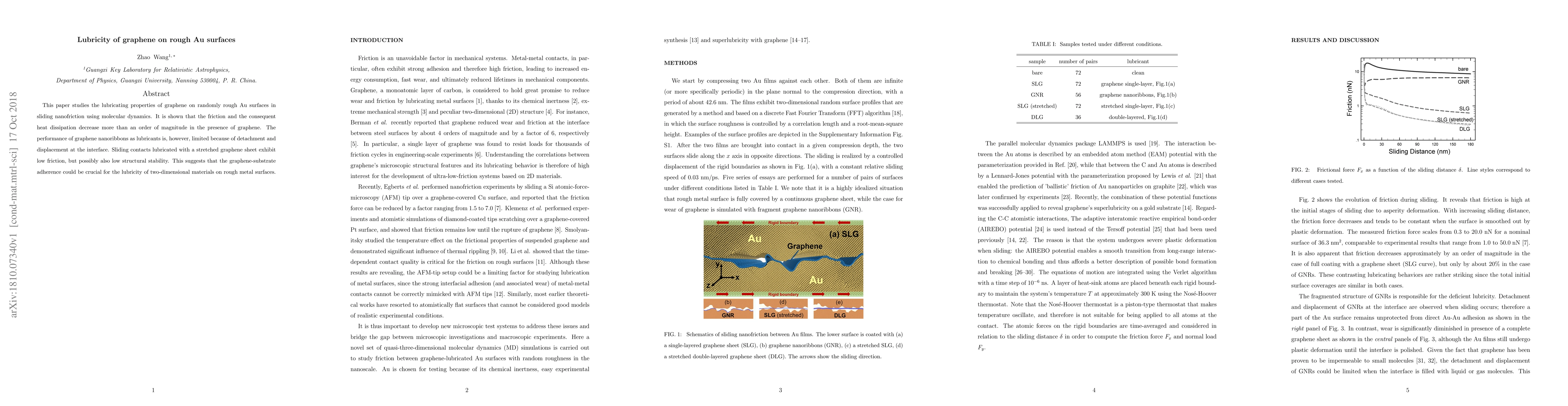 Graphene reduces friction on rough Au surfaces by more than an order of magnitude, but its use as a lubricant is limited due to interface detachment. Graphene-substrate adherence may be crucial for its effectiveness.
