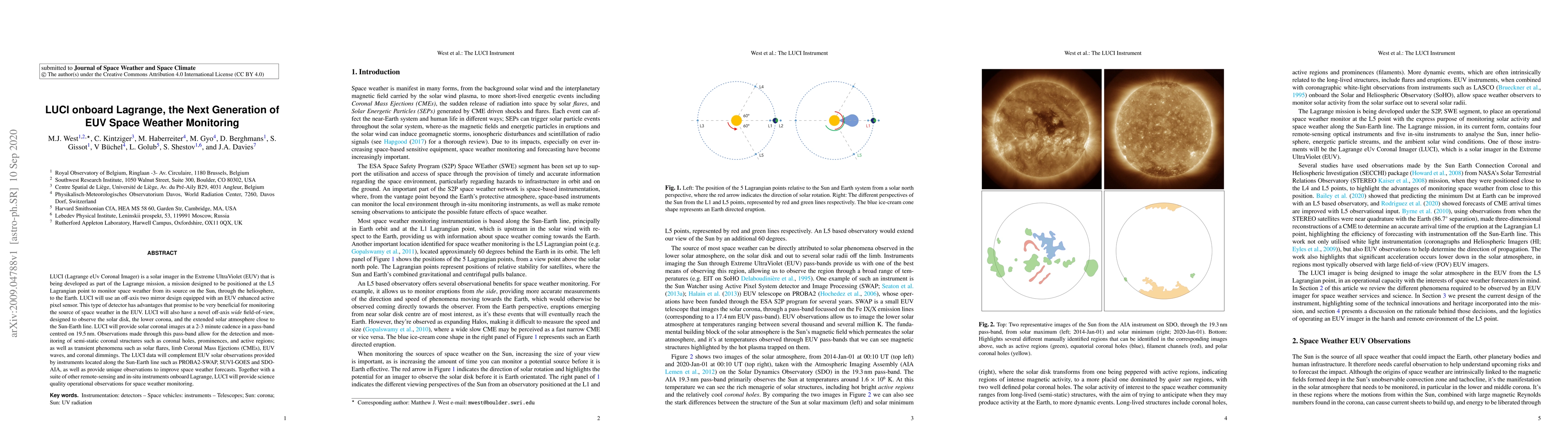 LUCI, a solar imager in the Extreme Ultraviolet (EUV) spectrum, is being developed for the Lagrange mission to monitor space weather from the Sun to Earth. It will provide high-cadence images of the solar corona and extended atmosphere, enhancing space weather forecasting.