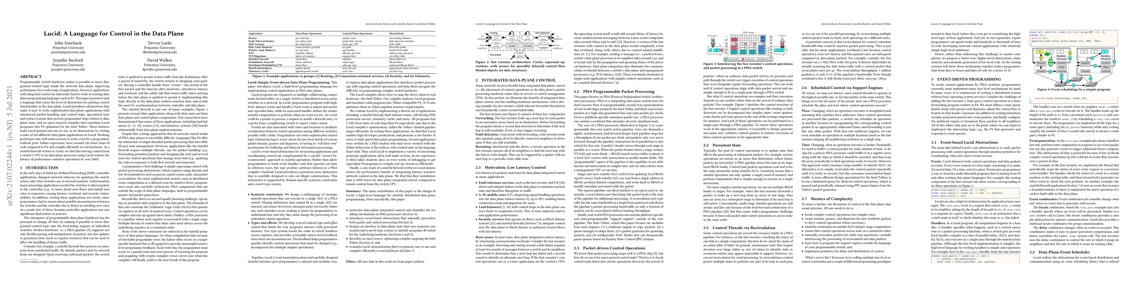 Programmable switch hardware makes it possible to move fine-grained control logic inside the network data plane, improving performance for a wide range of applications. However, applications with integrated control are inherently hard to write in existing data-plane programming languages such as P4. This paper presents Lucid, a language that raises the level of abstraction for putting control functionality in the data plane. Lucid introduces abstractions that make it easy to write sophisticated data-plane applications with interleaved packet-handling and control logic, specialized type and syntax systems that prevent programmer bugs related to data-plane state, and an open-sourced compiler that translates Lucid programs into P4 optimized for the Intel Tofino. These features make Lucid general and easy to use, as we demonstrate by writing a suite of ten different data-plane applications in Lucid. Working prototypes take well under an hour to write, even for a programmer without prior Tofino experience, have around 10x fewer lines of code compared to P4, and compile efficiently to real hardware. In a stateful firewall written in Lucid, we find that moving control from a switch's CPU to its data-plane processor using Lucid reduces the latency of performance-sensitive operations by over 300X.