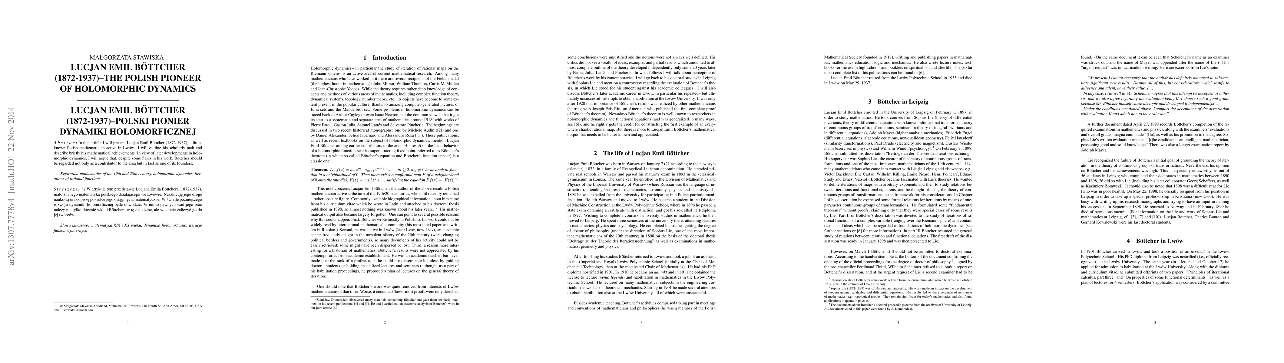 This paper, based in part on joint work with Stanis{\l}aw Domoradzki, concerns Lucjan Emil B\"ottcher (1872-1937)-- a little-known Polish mathematician active in Lw\'ow. I outline B\"ottcher's scholarly path, focusing on his studies in Leipzig with Sophus Lie, his later academic career in Lw\'ow and the hindrances he faced in its advancement. I also describe very briefly his mathematical achievements. In view of later developments in holomorphic dynamics, I argue that, despite flaws in his work, B\"ottcher should be regarded not only as a contributor to the area but in fact as one of its founders.