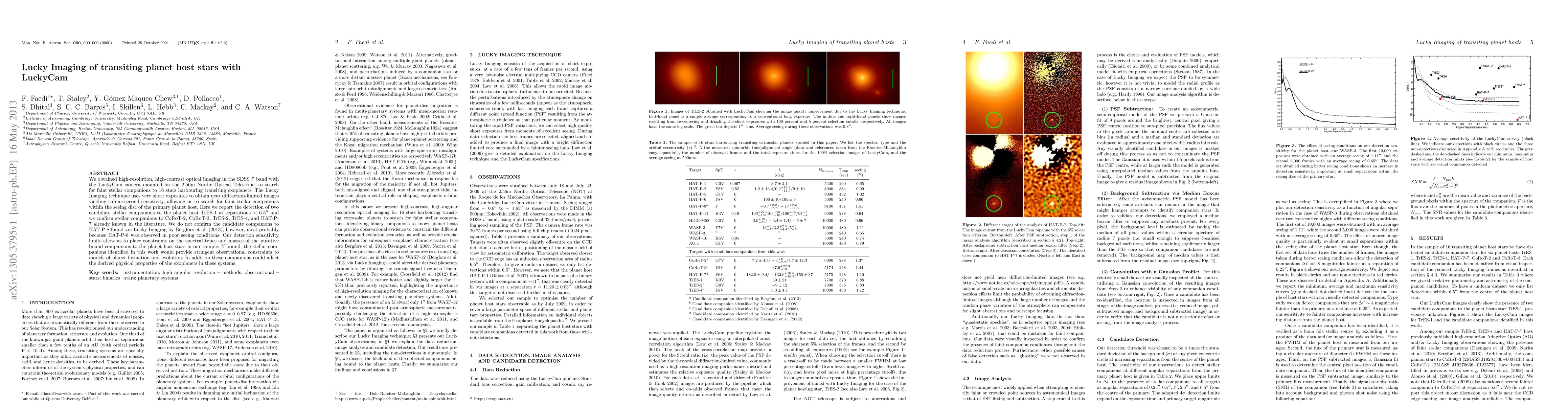 This paper reports high-resolution imaging of 16 stars hosting transiting exoplanets using the Lucky Imaging technique with LuckyCam on the Nordic Optical Telescope. The study detected two candidate companions to TrES-1 and confirmed known companions to several other planet hosts, while not verifying a previously reported companion to HAT-P-8 due to poor seeing conditions.