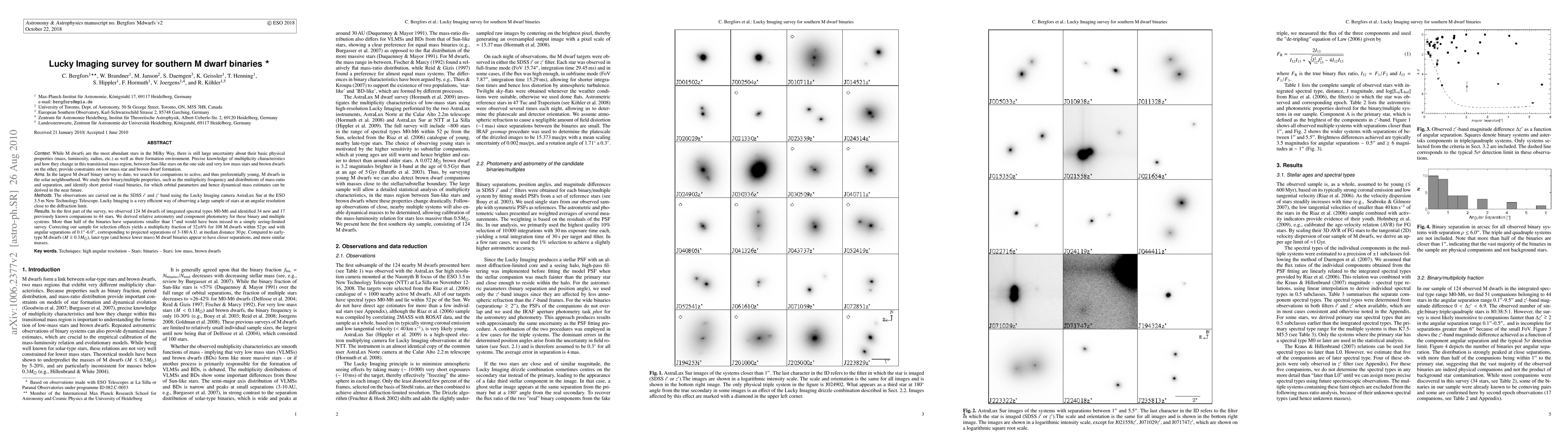 The research utilized the Lucky Imaging technique with the AstraLux Sur camera at the ESO 3.5 m New Technology Telescope, observing 124 M dwarfs in the SDSS i' and z' bands to identify companions and derive relative astrometry and photometry.
