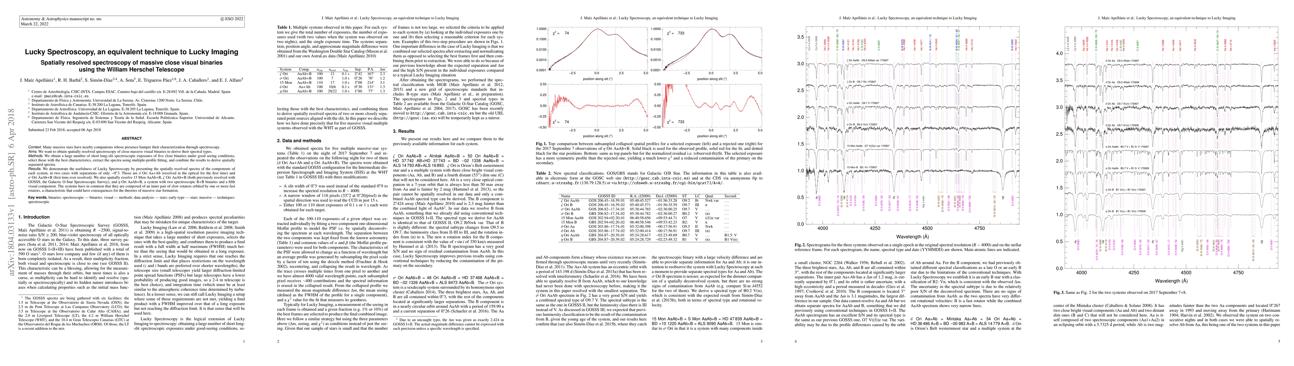 This paper demonstrates the effectiveness of Lucky Spectroscopy for obtaining spatially resolved spectra of massive close visual binaries, resolving components with separations as small as ~0.3" for the first time in some cases, including delta Ori Aa+Ab and sigma Ori AaAb+B. The technique could provide insights into the formation theories of massive stars.