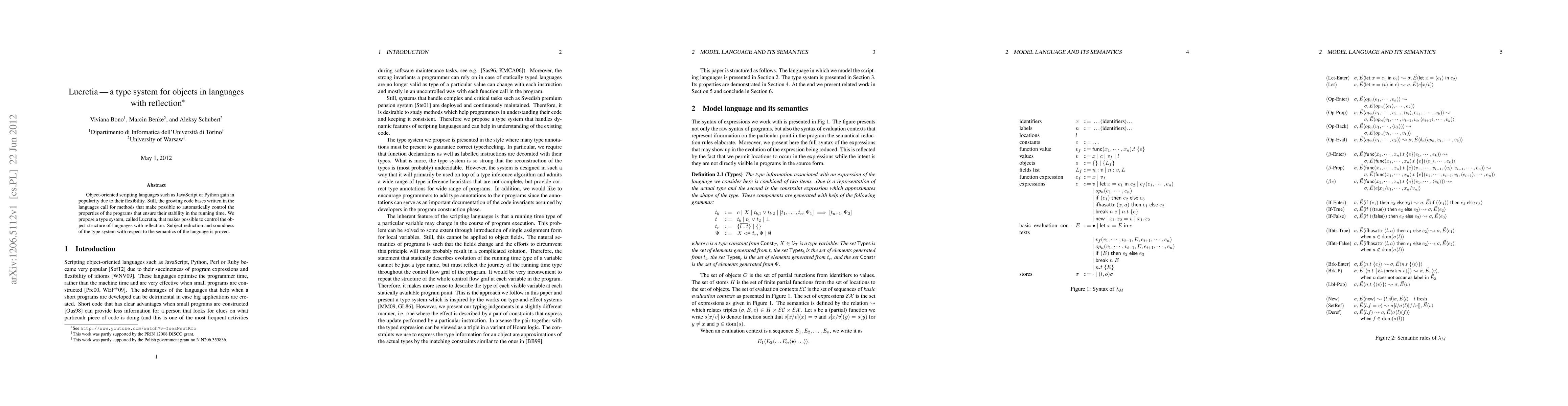 Lucretia is a proposed type system for object-oriented scripting languages with reflection, designed to control object structures and ensure runtime stability. The system's subject reduction and soundness properties are mathematically proven.