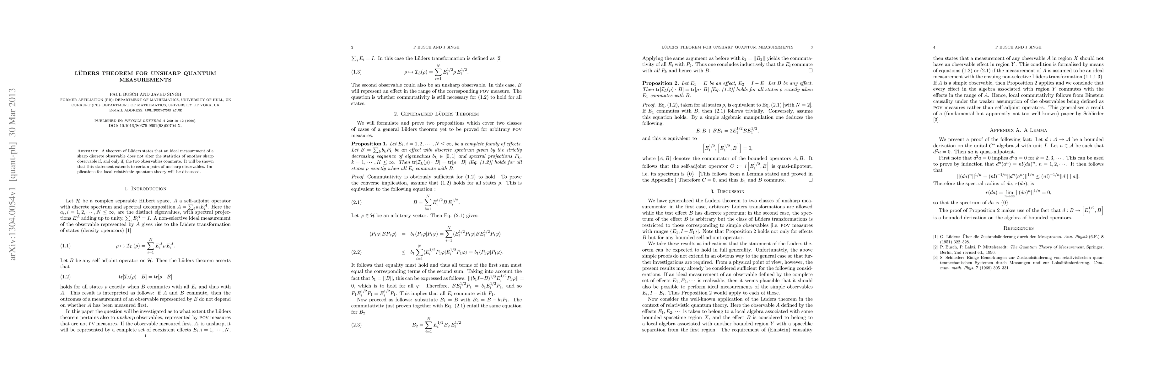 The Lüders theorem is extended to unsharp observables, showing that their measurement does not alter the statistics of another unsharp observable if they satisfy certain conditions. This has implications for local relativistic quantum theory.