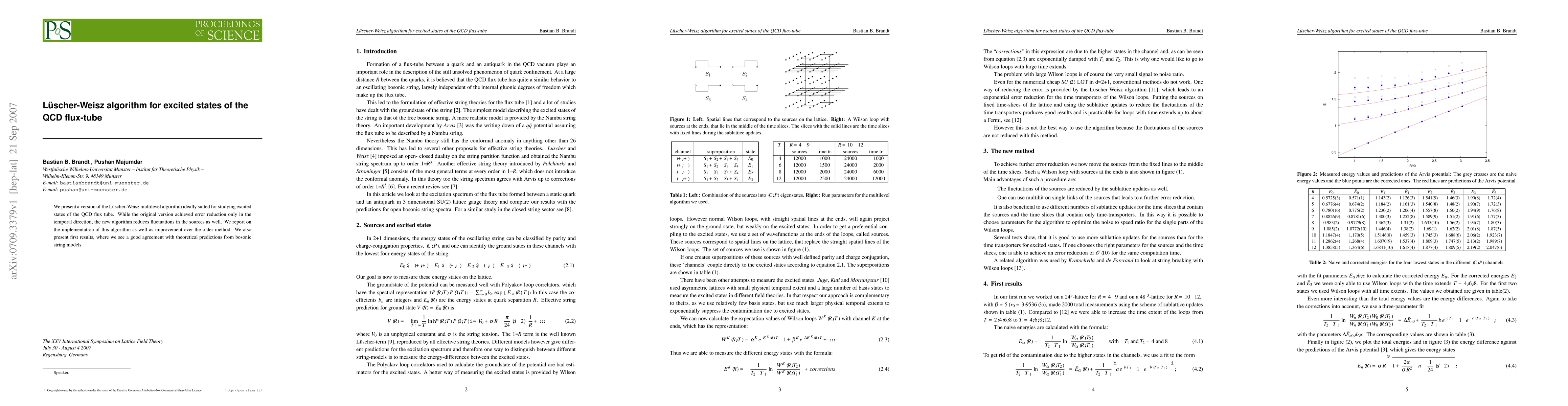 The Luescher-Weisz algorithm has been adapted to reduce fluctuations in both temporal and source directions for studying excited states in QCD flux tubes, showing improved results over previous methods and aligning well with bosonic string model predictions.