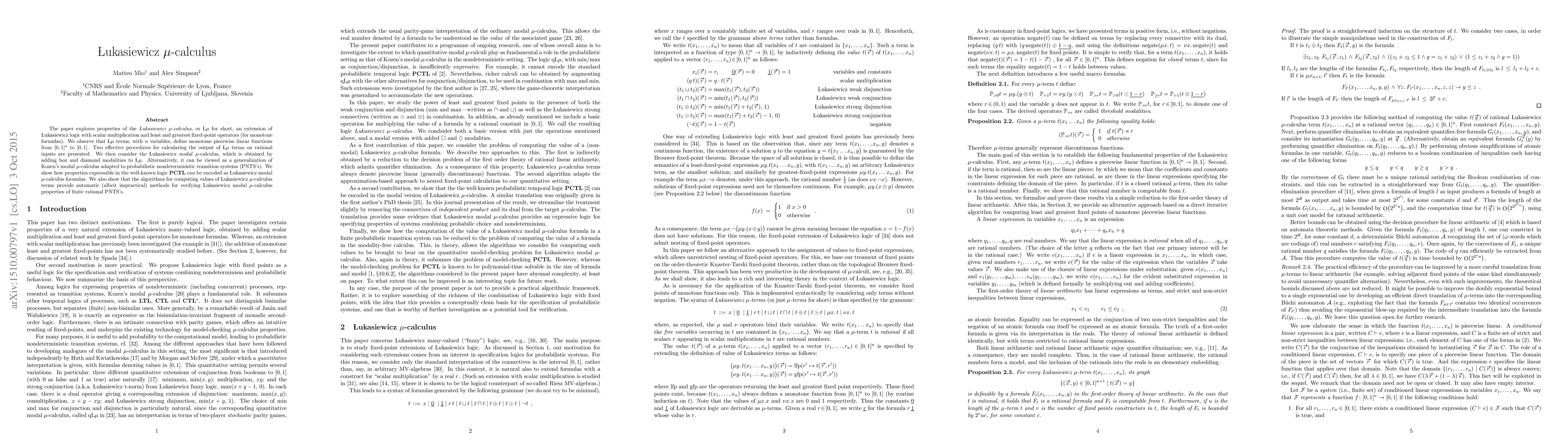 The paper investigates the properties of the {\L}ukasiewicz {\mu}-calculus, demonstrating its ability to define monotone piecewise linear functions from $[0, 1]^n$ to $[0, 1]$. It also presents effective procedures for evaluating these terms on rational inputs and explores the extension to probabilistic nondeterministic transition systems, showing how PCTL properties can be encoded in this calculus.