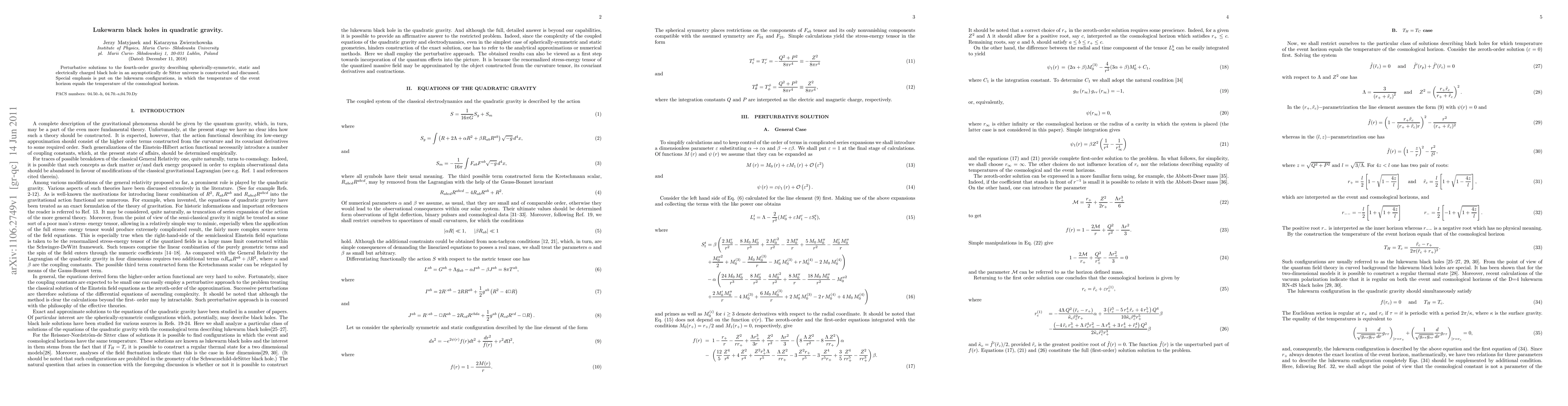 Perturbative solutions to the fourth-order gravity describing spherically-symmetric, static and electrically charged black hole in an asymptotically de Sitter universe is constructed and discussed. Special emphasis is put on the lukewarm configurations, in which the temperature of the event horizon equals the temperature of the cosmological horizon.