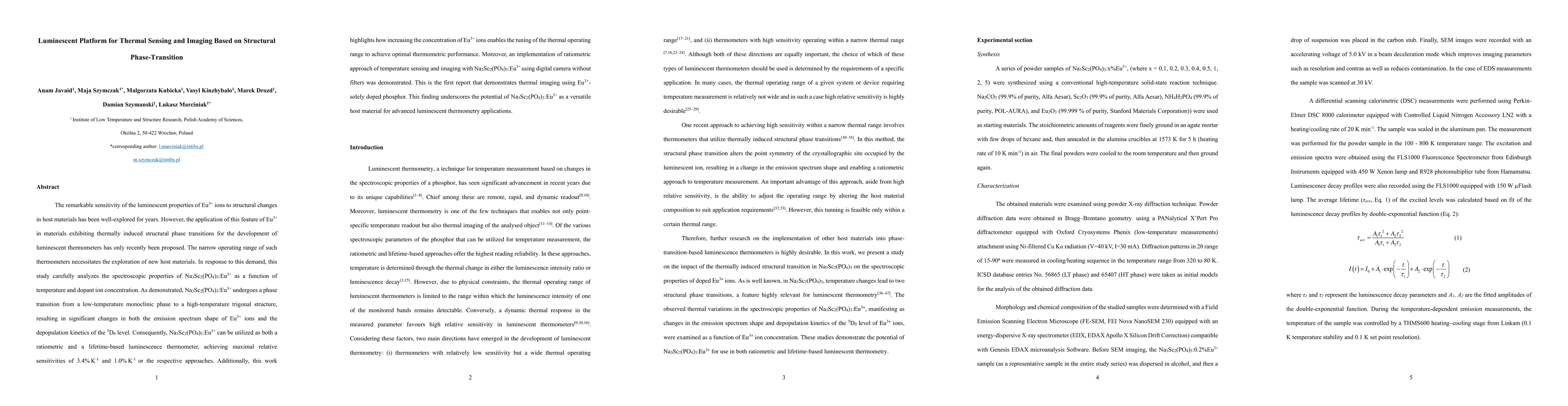 This research highlights the potential of material X as a versatile host for advanced luminescent thermometry applications due to its sensitivity to structural phase transitions and tunable thermal operating range.