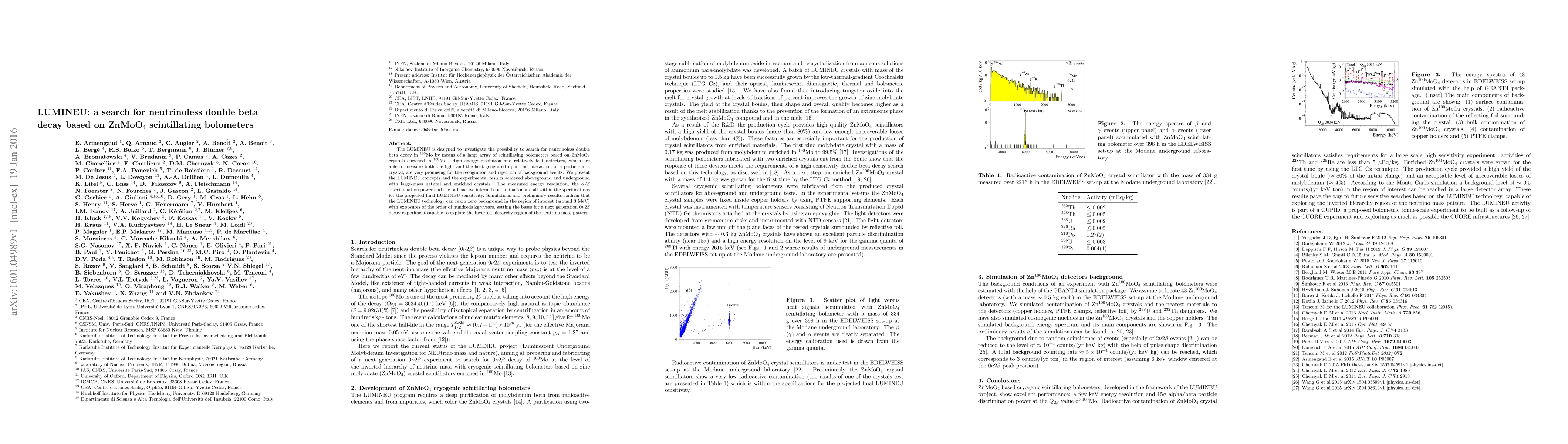 The LUMINEU experiment uses scintillating bolometers to search for neutrinoless double beta decay in 100Mo, aiming to explore the inverted hierarchy region of neutrino mass patterns with future experiments.