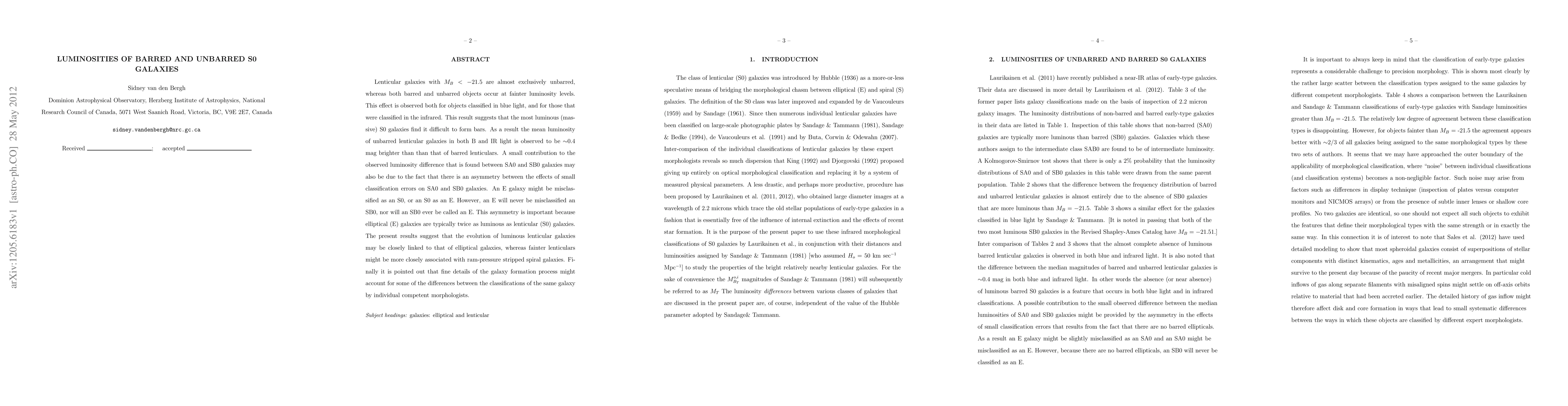 Lenticular galaxies with M_B < -21.5 are almost exclusively unbarred, whereas both barred and unbarred objects occur at fainter luminosity levels. This effect is observed both for objects classified in blue light, and for those that were classified in the infrared. This result suggests that the most luminous (massive) S0 galaxies find it difficult to form bars. As a result the mean luminosity of unbarred lenticular galaxies in both B and IR light is observed to be ~0.4 mag brighter than than that of barred lenticulars. A small contribution to the observed luminosity difference that is found between SA0 and SB0 galaxies may also be due to the fact that there is an asymmetry between the effects of small classification errors on SA0 and SB0 galaxies. An E galaxy might be misclassified as an S0, or an S0 as an E. However, an E will never be misclassified an SB0, nor will an SB0 ever be called an E. This asymmetry is important because elliptical (E) galaxies are typically twice as luminous as lenticular (S0) galaxies. The present results suggest that the evolution of luminous lenticular galaxies may be closely linked to that of elliptical galaxies, whereas fainter lenticulars might be more closely associated with ram-pressure stripped spiral galaxies. Finally it is pointed out that fine details of the galaxy formation process might account for some of the differences between the classifications of the same galaxy by individual competent morphologists.
