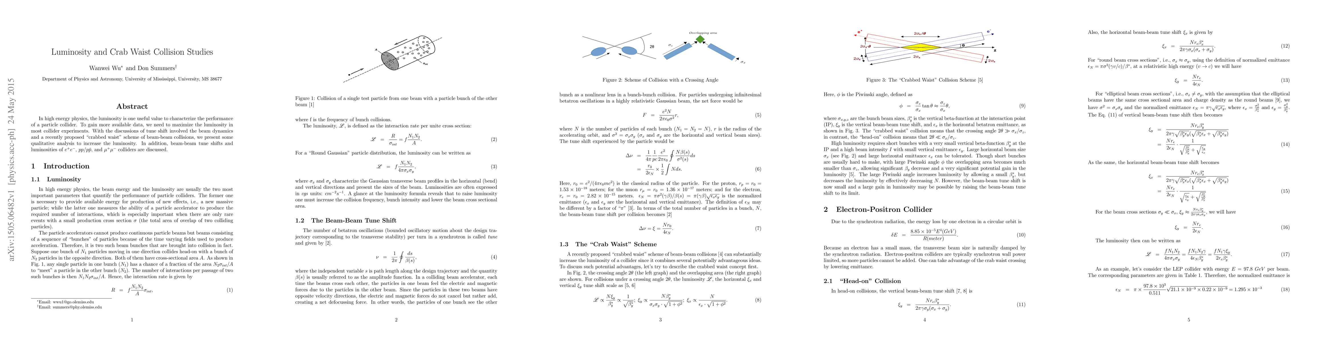 In high energy physics, the luminosity is one useful value to characterize the performance of a particle collider. To gain more available data, we need to maximize the luminosity in most collider experiments. With the discussions of tune shift involved the beam dynamics and a recently proposed "crabbed waist" scheme of beam-beam collisions, we present some qualitative analysis to increase the luminosity. In addition, beam-beam tune shifts and luminosities of $e^{+}e^{-}$, $pp$/$p\bar{p}$, and $\mu^{+}\mu^{-}$ colliders are discussed.