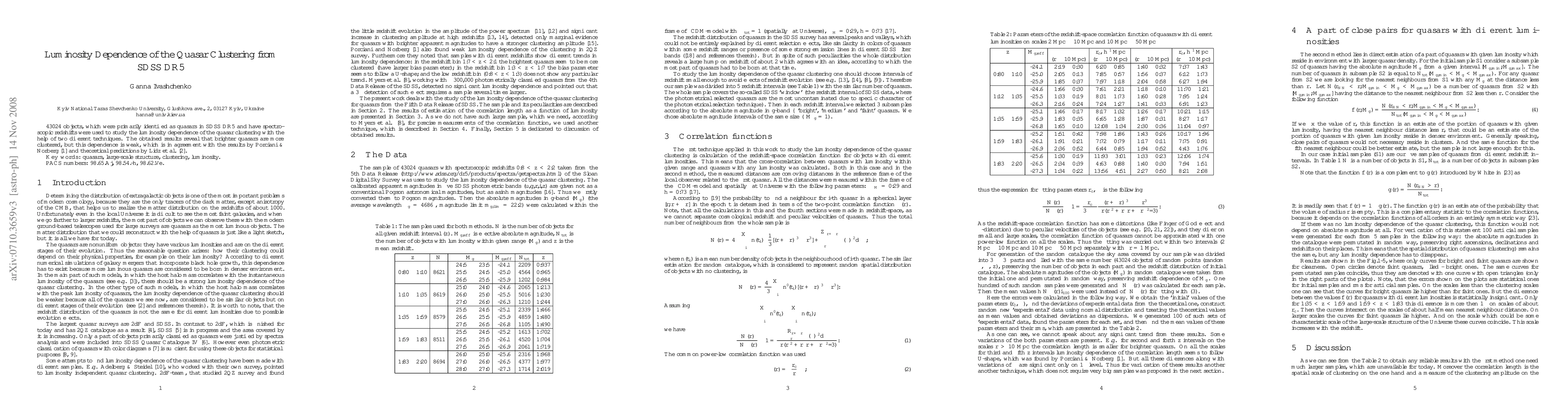 This study analyzes 43,024 quasars from SDSS DR5 to investigate luminosity dependence in quasar clustering, finding that brighter quasars exhibit stronger clustering, albeit weakly. The results align with previous findings by Porciani & Norberg (2006) and theoretical models by Lidz et al. (2006).