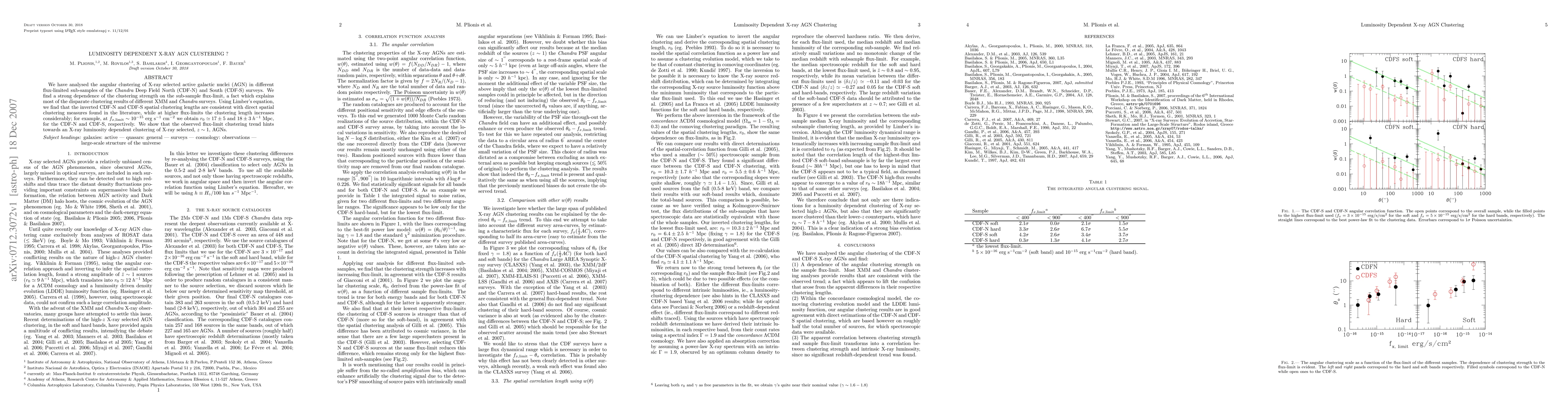 We have analysed the angular clustering of X-ray selected active galactic nuclei (AGN) in different flux-limited sub-samples of the Chandra Deep Field North (CDF-N) and South (CDF-S) surveys. We find a strong dependence of the clustering strength on the sub-sample flux-limit, a fact which explains most of the disparate clustering results of different XMM and Chandra surveys. Using Limber's equation, we find that the inverted CDF-N and CDF-S spatial clustering lengths are consistent with direct spatial clustering measures found in the literature, while at higher flux-limits the clustering length increases considerably; for example, at $fx,limit ~ 10^{-15} erg/s/cm^{-2} we obtain r_0~ 17 +- 5 and 18+- 3 h^{-1} Mpc, for the CDF-N and CDF-S, respectively. We show that the observed flux-limit clustering trend hints towards an X-ray luminosity dependent clustering of X-ray selected, $z\sim 1$, AGNs.