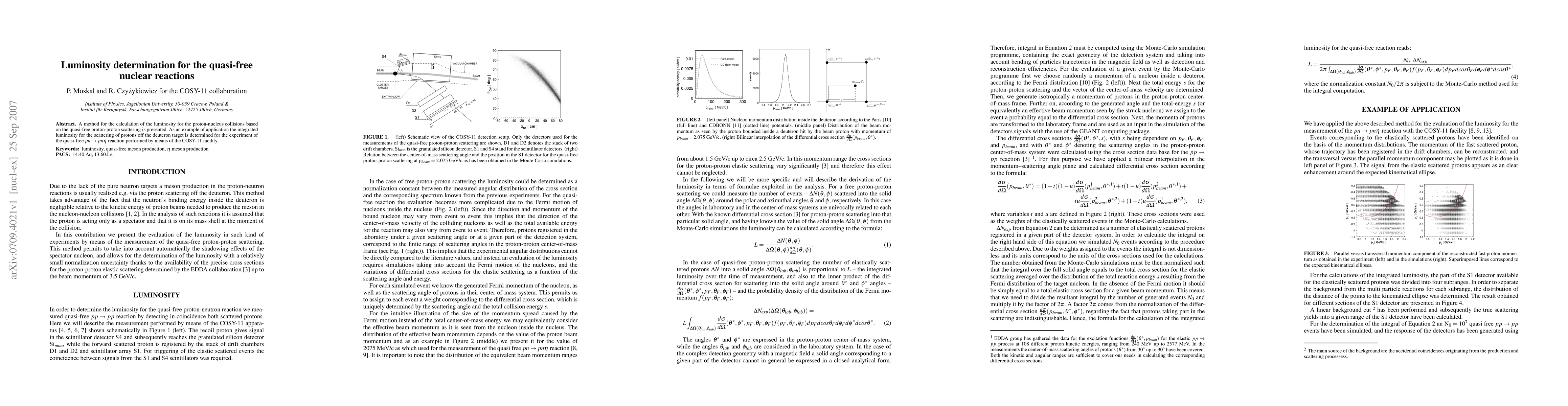 A method for the calculation of the luminosity for the proton-nucleus collisions based on the quasi-free proton-proton scattering is presented. As an example of application the integrated luminosity for the scattering of protons off the deuteron target is determined for the experiment of the quasi-free pn --> pneta reaction performed by means of the COSY-11 facility.