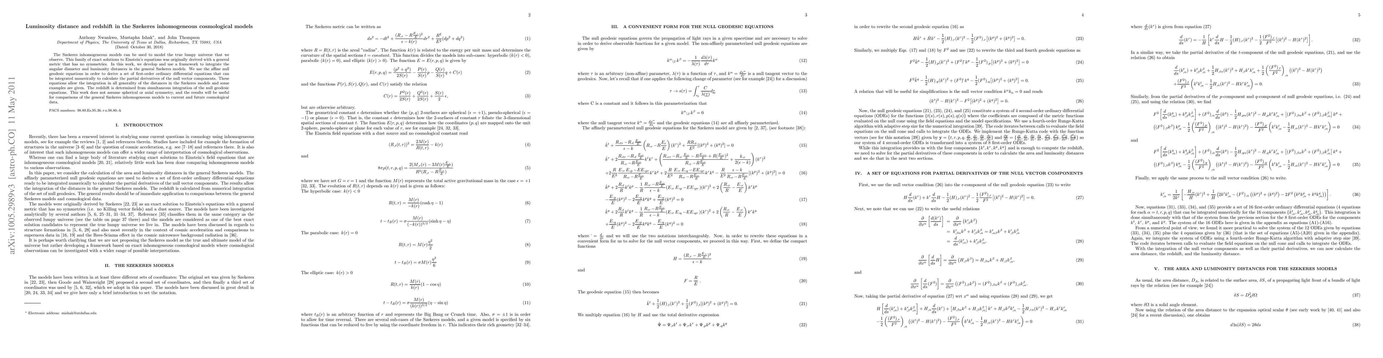 This paper develops a numerical framework to integrate angular diameter and luminosity distances in Szekeres inhomogeneous cosmological models, derived from exact solutions to Einstein's equations without symmetry assumptions. The method uses affine null geodesic equations to determine redshift and distances, providing a tool for comparing these models to observational data.
