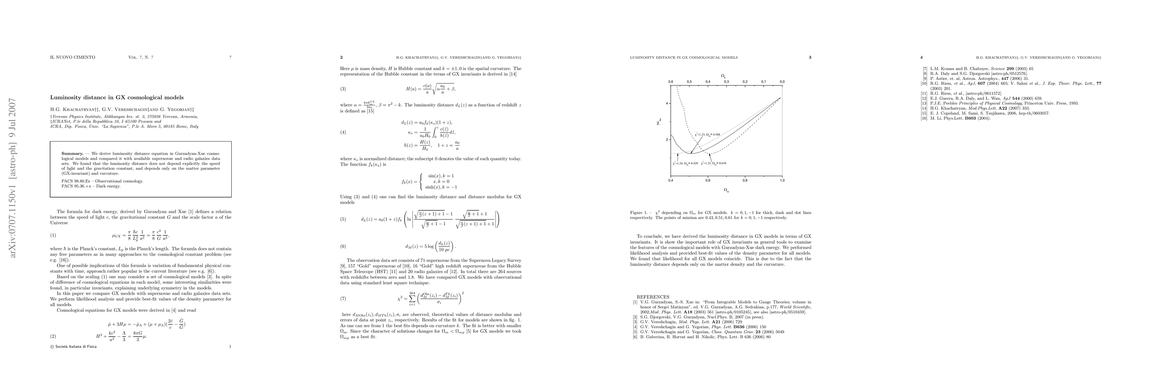 Researchers derived a luminosity distance equation for Gurzadyan-Xue cosmological models that is independent of the speed of light and gravitational constant, relying only on matter parameters and curvature.