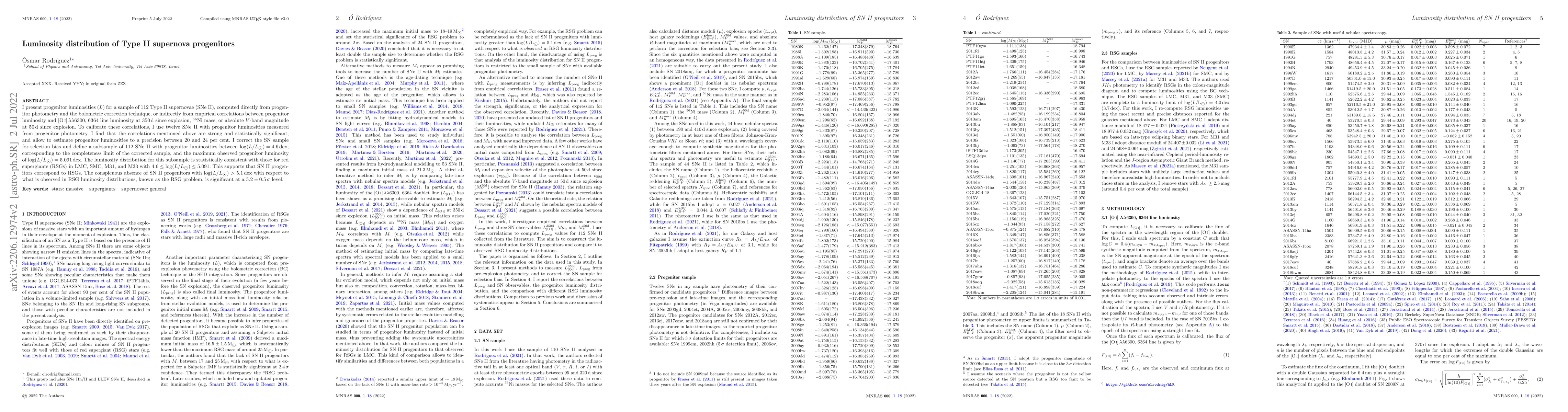 This study estimates the luminosities of 112 Type II supernova progenitors, finding a distribution consistent with red supergiants (RSGs) in various galaxies. The absence of progenitors with luminosities exceeding $\log(L/L_{\odot}) > 5.1$ dex is significant, highlighting the RSG problem.