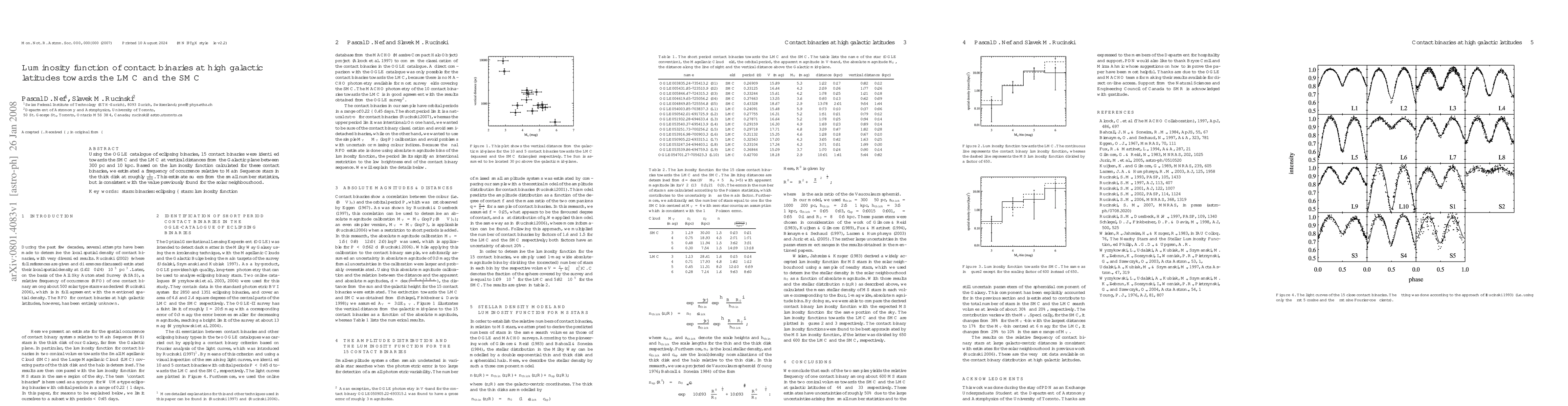Researchers identified 15 contact binaries near the Large Magellanic Cloud and Small Magellanic Cloud, estimating their frequency of occurrence in the thick disk to be about 1/600 compared to Main Sequence stars.