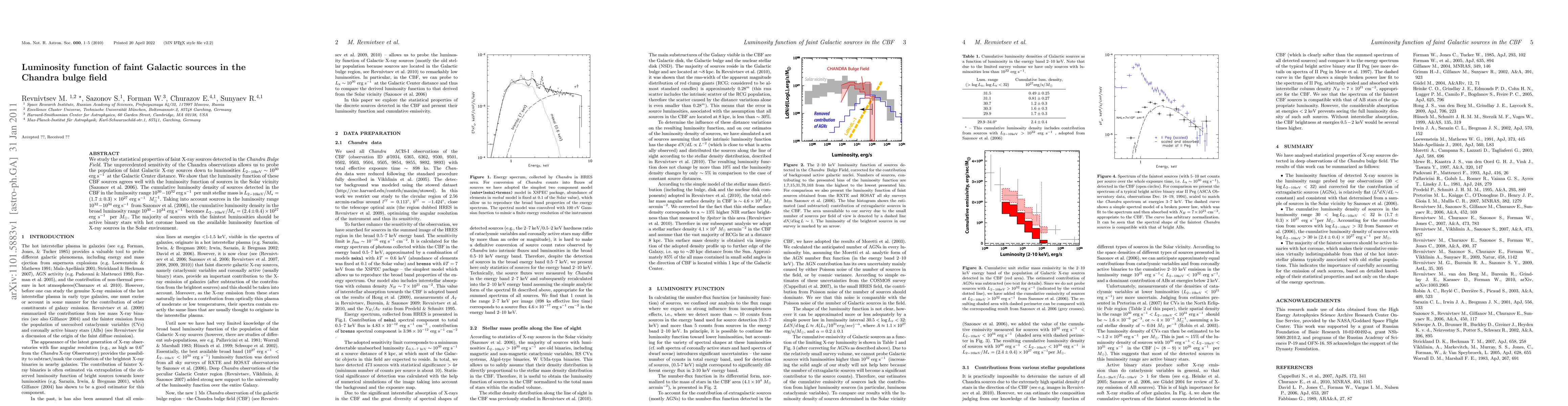 This study investigates faint X-ray sources in the Chandra Bulge Field, revealing a luminosity function that agrees with those of Solar vicinity sources, and estimating a cumulative luminosity density per unit stellar mass of 2.4e27 erg/sec/Msun.