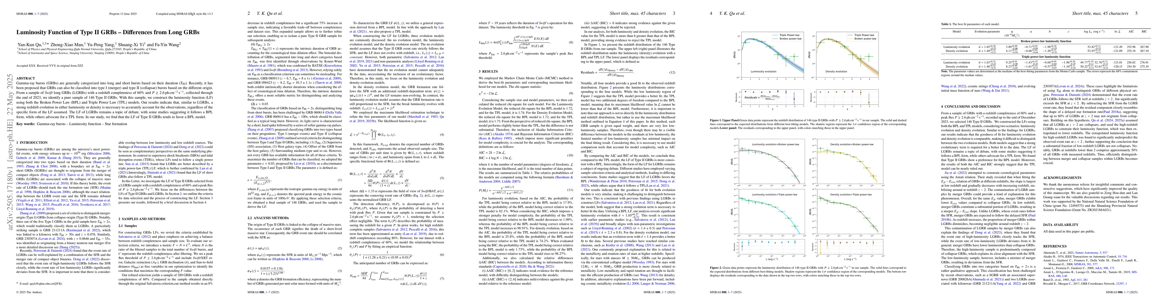 This research contributes to understanding the differences between Type II and long GRBs, refining the luminosity function models and providing insights into the evolution of GRBs with redshift.