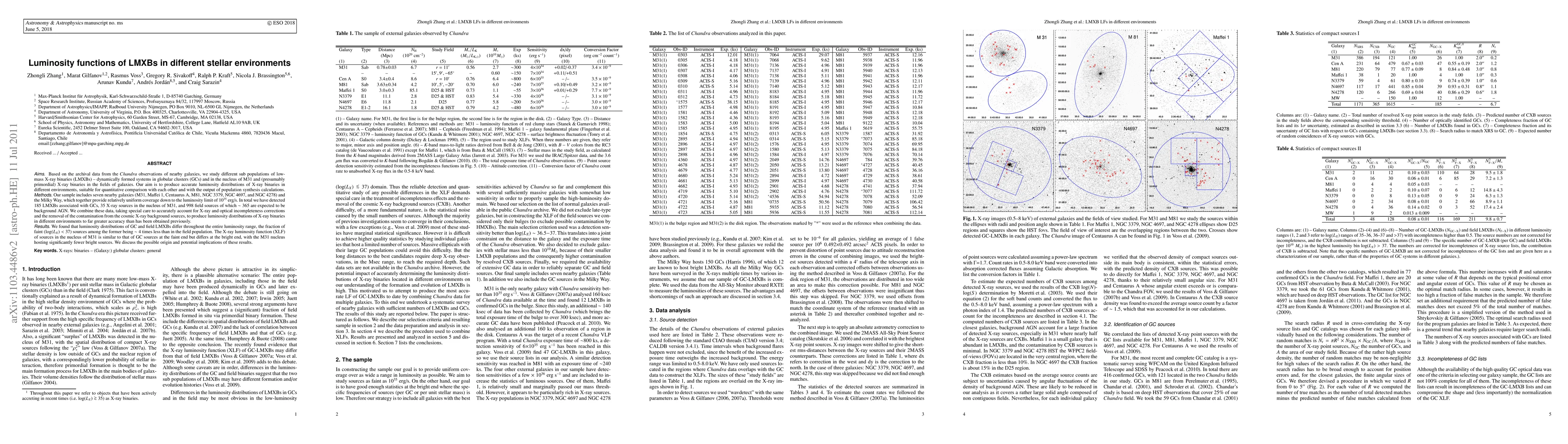 The study compares luminosity functions of Low-Mass X-ray Binaries (LMXBs) in different stellar environments, including globular clusters and galaxy nuclei, revealing distinct differences in their luminosity distributions.